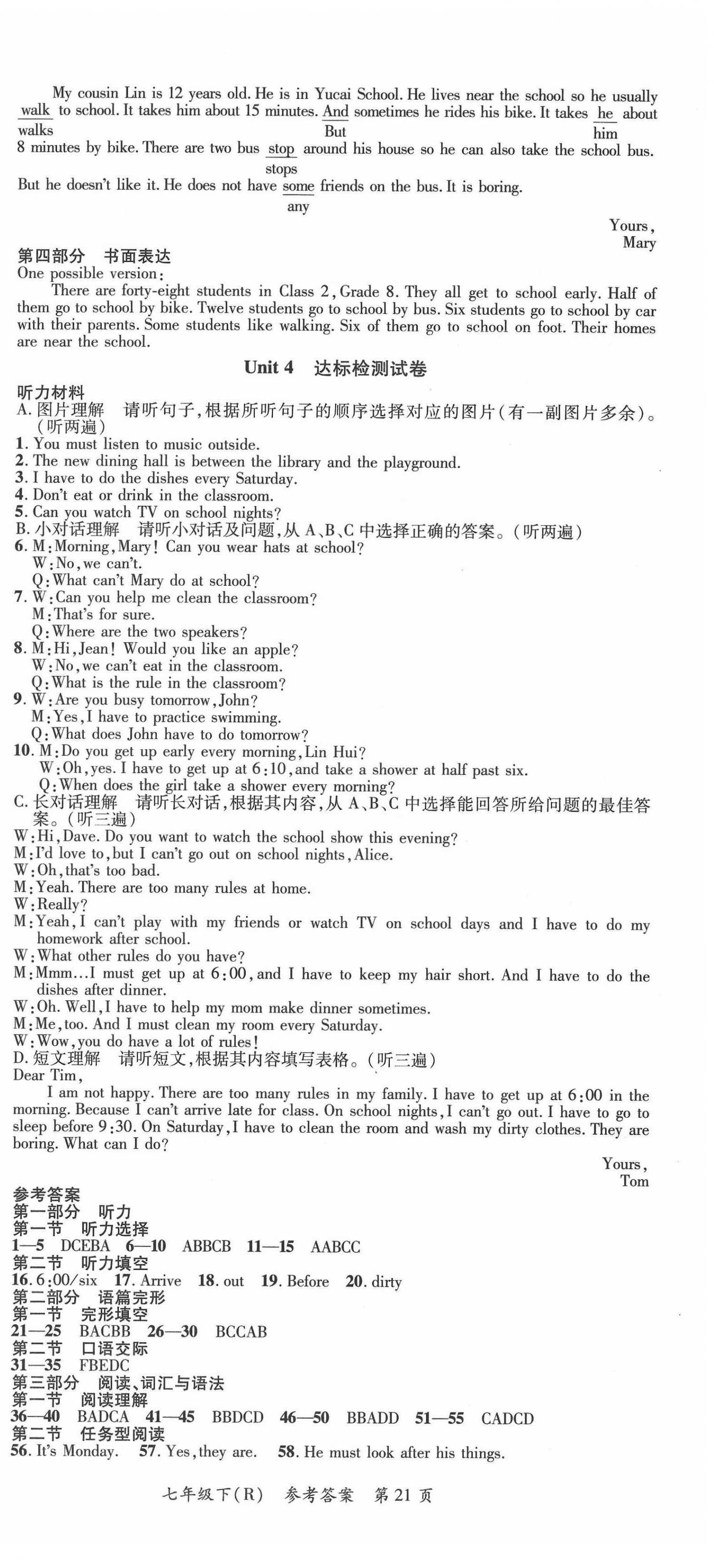 注:目前有些书本章节名称可能整理的还不是很完善,但都是按照顺序排列的,请同学们按照顺序仔细查找。练习册 2022年名师三导学练考七年级英语下册人教版 答案主要是用来给同学们做完题方便对答案用的,请勿直接抄袭。