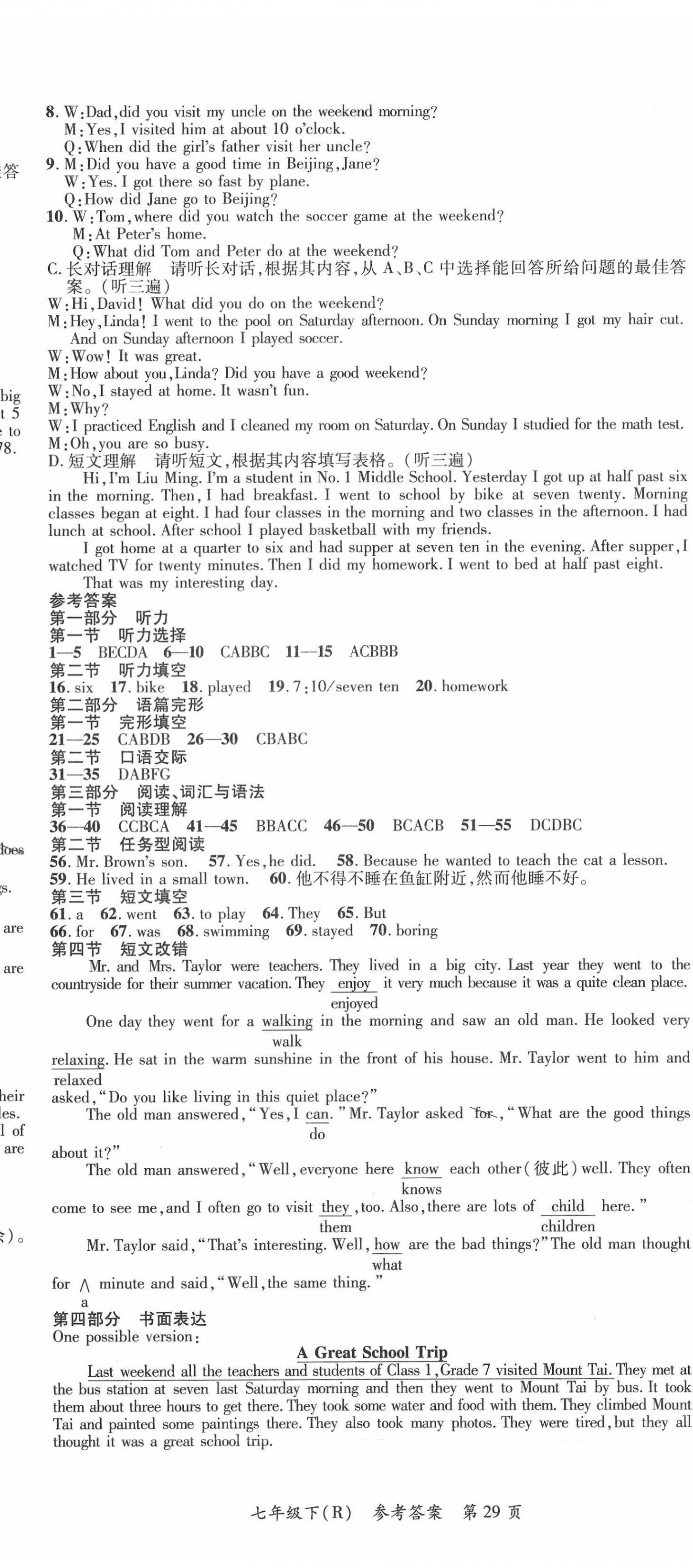 注:目前有些书本章节名称可能整理的还不是很完善,但都是按照顺序排列的,请同学们按照顺序仔细查找。练习册 2022年名师三导学练考七年级英语下册人教版 答案主要是用来给同学们做完题方便对答案用的,请勿直接抄袭。