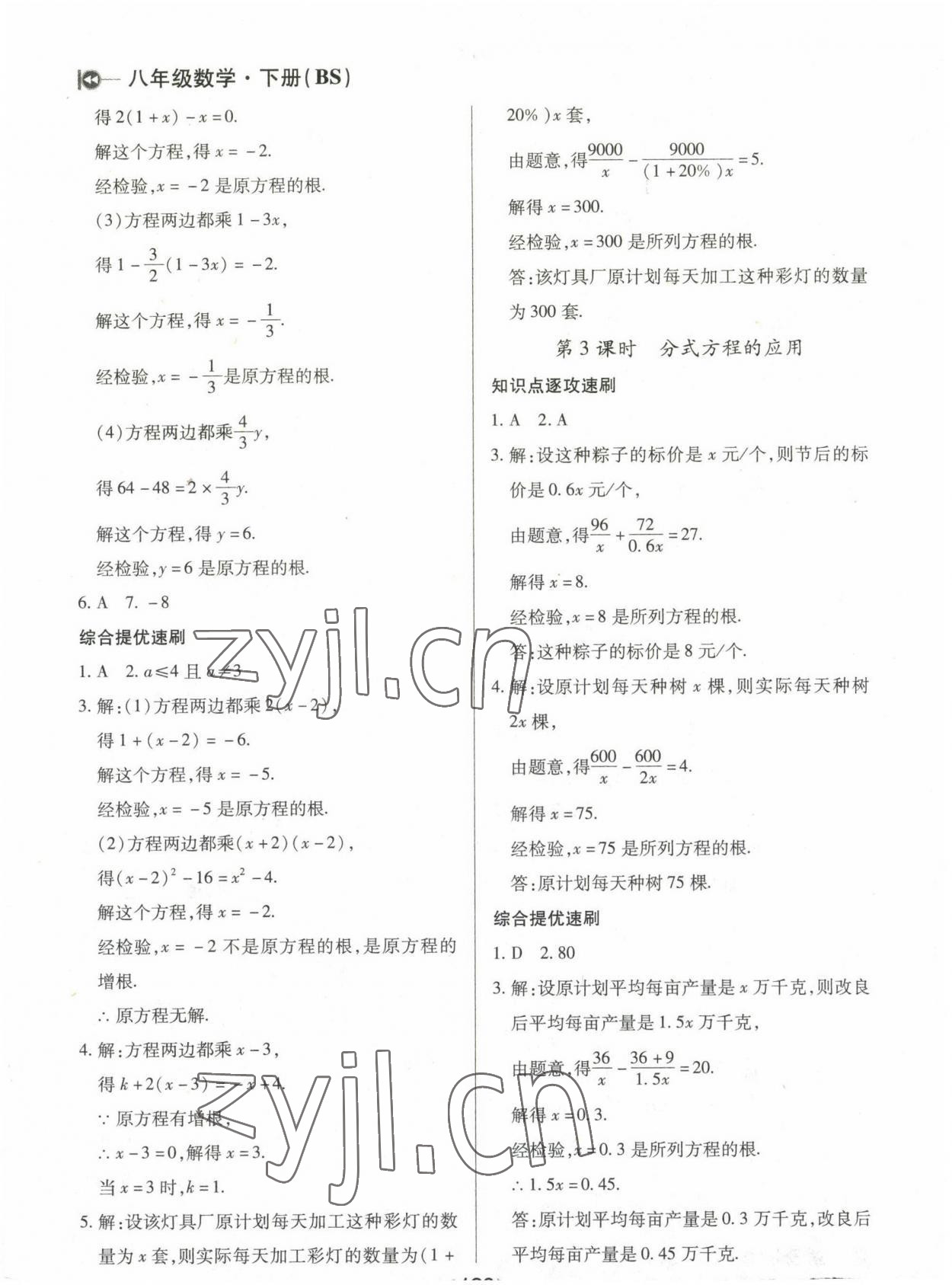 2022年课堂10分钟小题速刷八年级数学下册北师大版