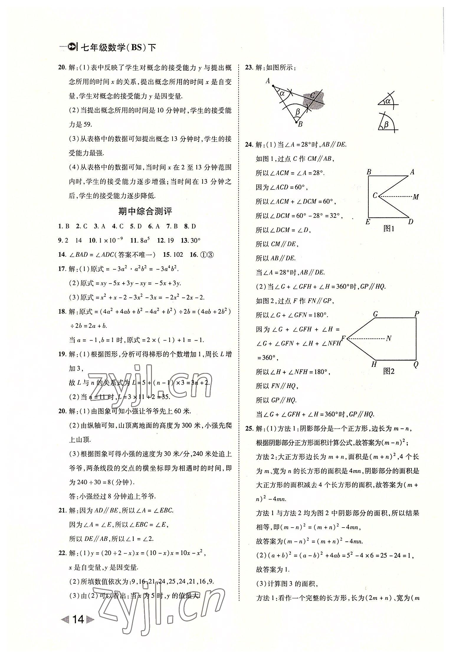 注:目前有些书本章节名称可能整理的还不是很完善,但都是按照顺序排列的,请同学们按照顺序仔细查找。练习册 2022年胜券在握打好基础作业本七年级数学下册北师大版 答案主要是用来给同学们做完题方便对答案用的,请勿直接抄袭。