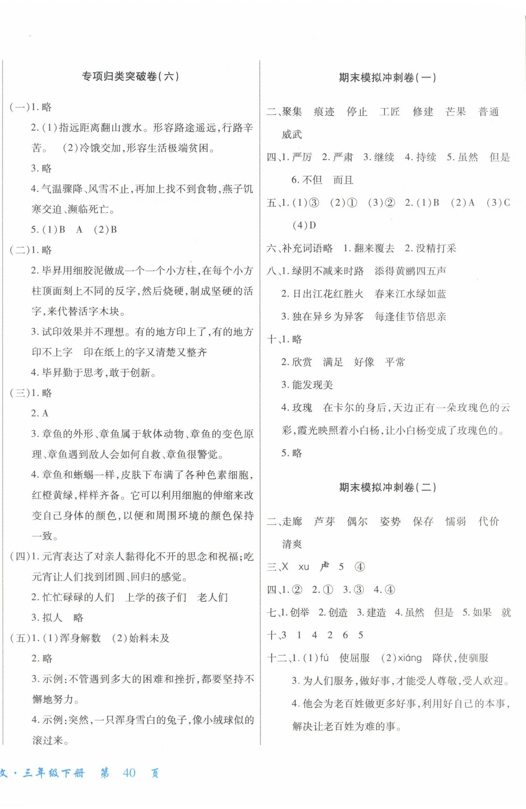 注:目前有些书本章节名称可能整理的还不是很完善,但都是按照顺序排列的,请同学们按照顺序仔细查找。练习册 2022年小学单元同步核心密卷三年级语文下册人教版 答案主要是用来给同学们做完题方便对答案用的,请勿直接抄袭。