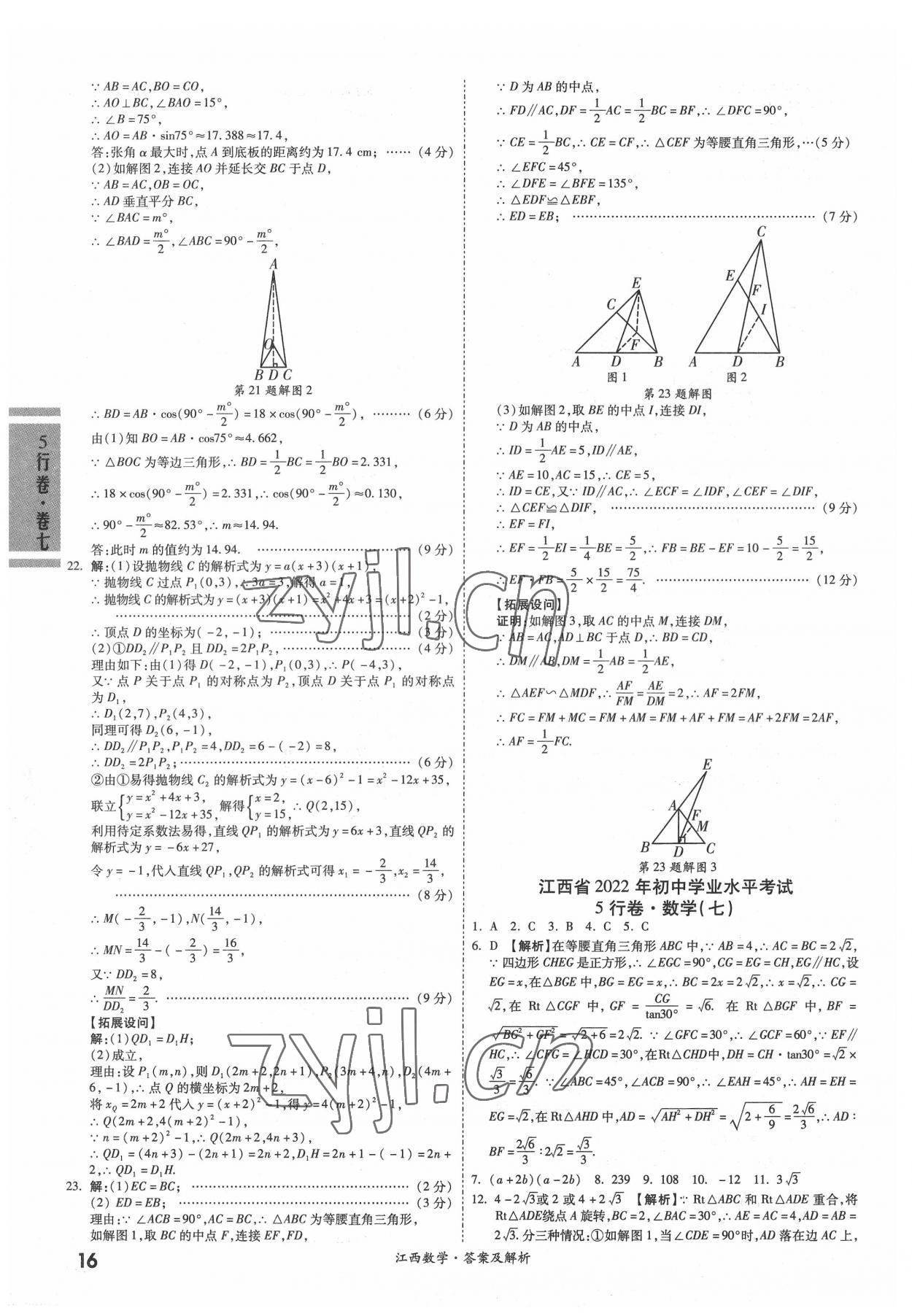 2022年一战成名5行卷数学江西专版