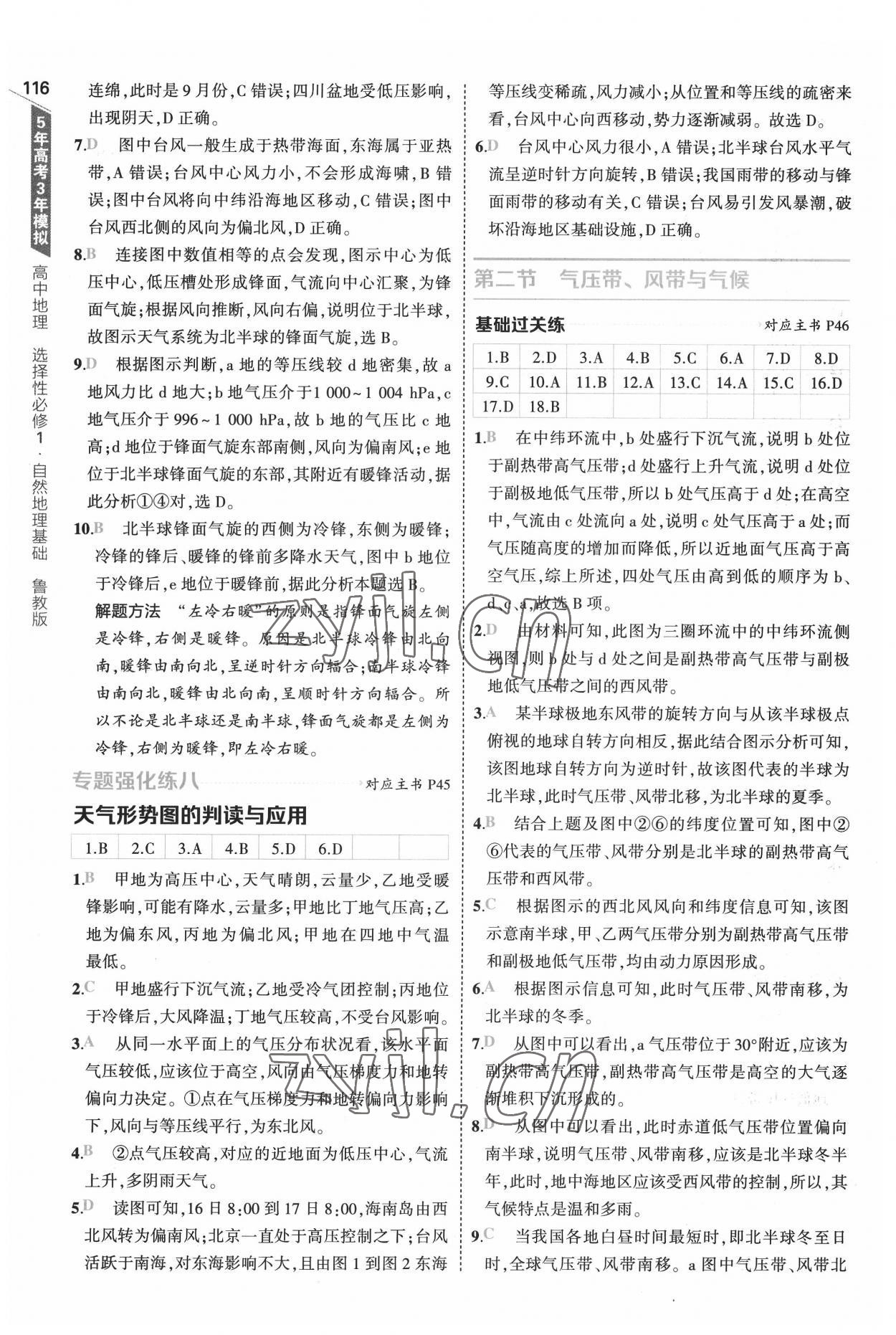 注:目前有些书本章节名称可能整理的还不是很完善,但都是按照顺序排列的,请同学们按照顺序仔细查找。练习册 2022年5年高考3年模拟地理选择性必修1自然地理基础鲁教版 答案主要是用来给同学们做完题方便对答案用的,请勿直接抄袭。