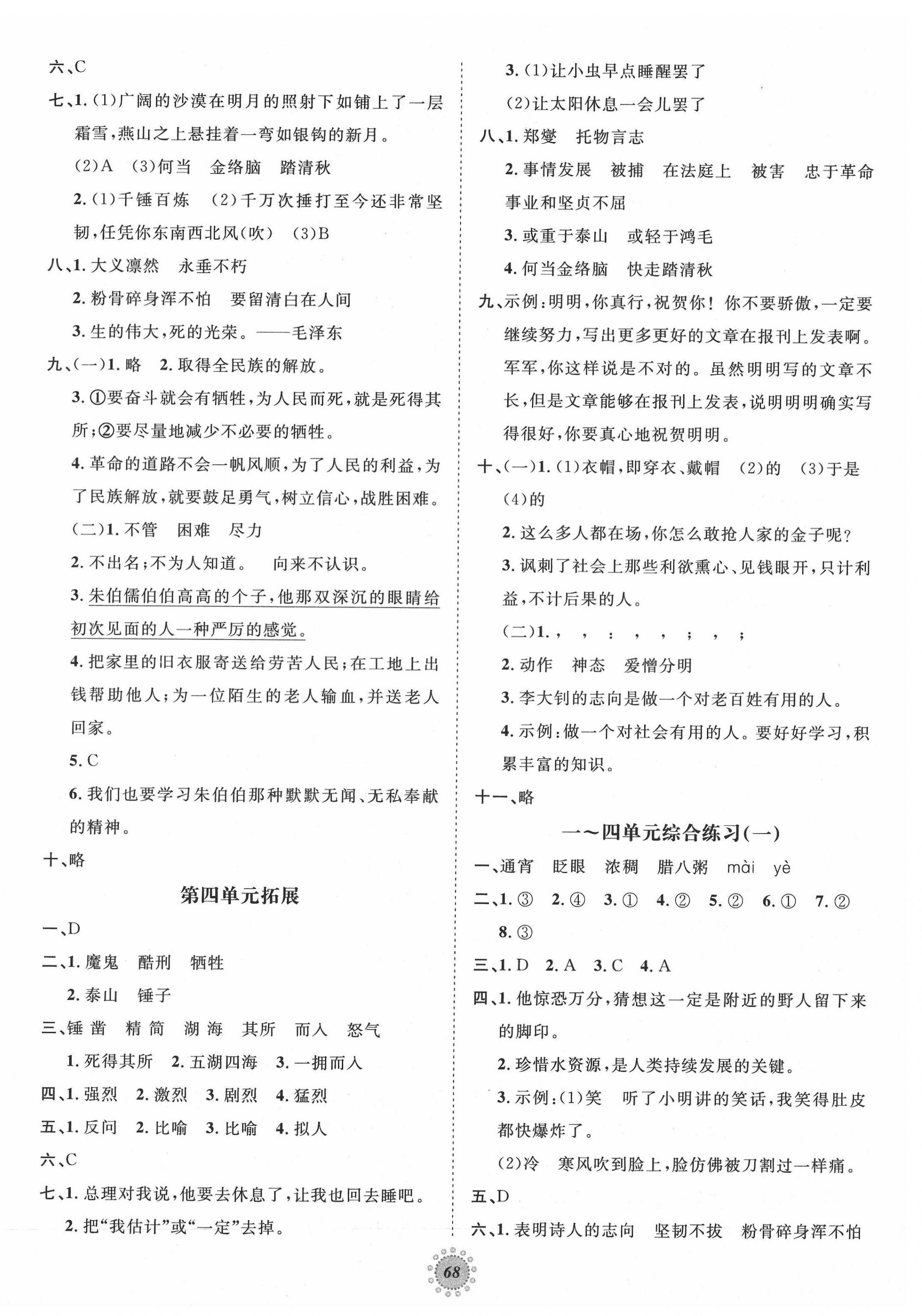 注:目前有些书本章节名称可能整理的还不是很完善,但都是按照顺序排列的,请同学们按照顺序仔细查找。练习册 2022年课时练题优练与测六年级语文下册人教版 答案主要是用来给同学们做完题方便对答案用的,请勿直接抄袭。