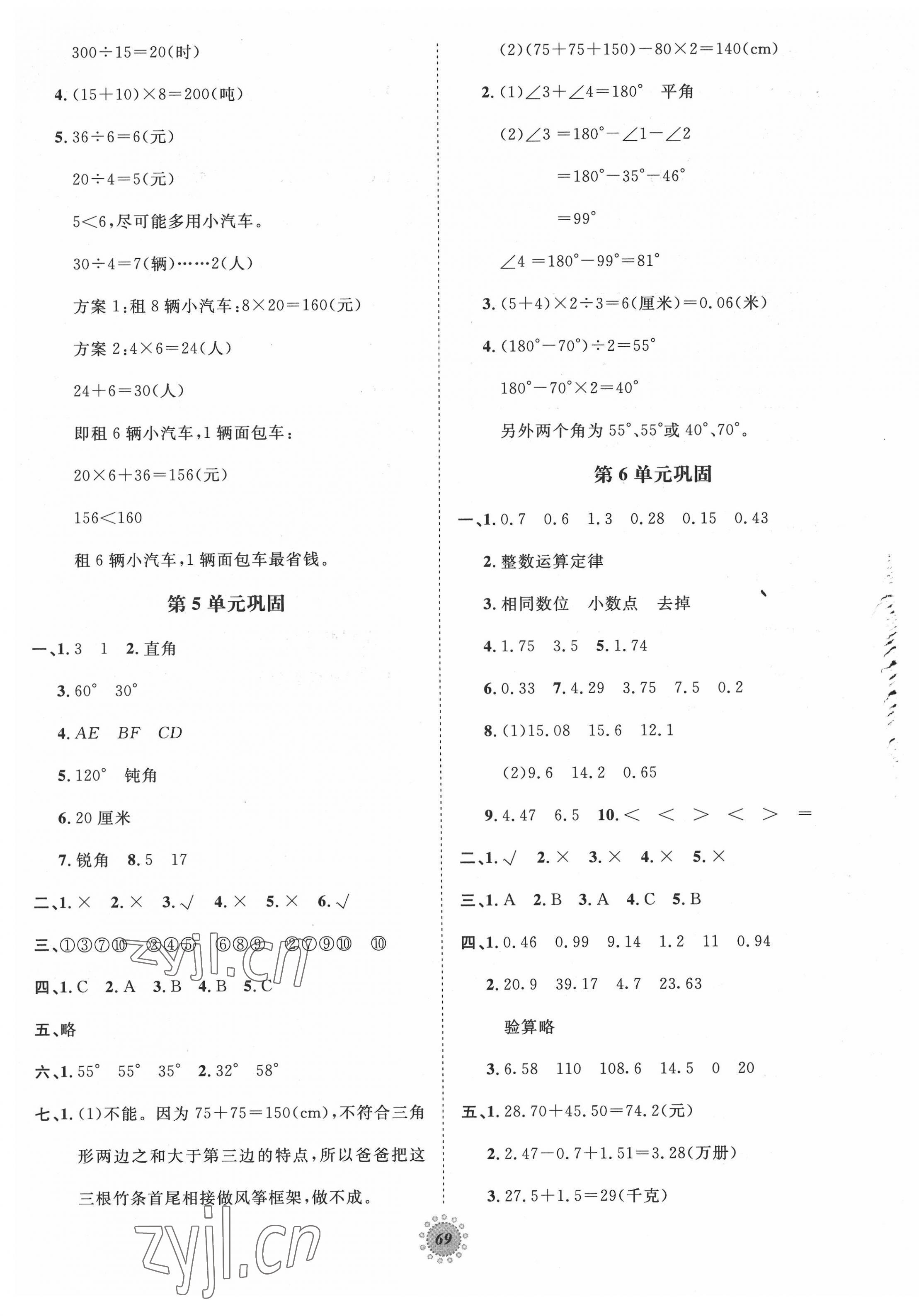 注:目前有些书本章节名称可能整理的还不是很完善,但都是按照顺序排列的,请同学们按照顺序仔细查找。练习册 2022年题优练与测课时练四年级数学下册人教版 答案主要是用来给同学们做完题方便对答案用的,请勿直接抄袭。