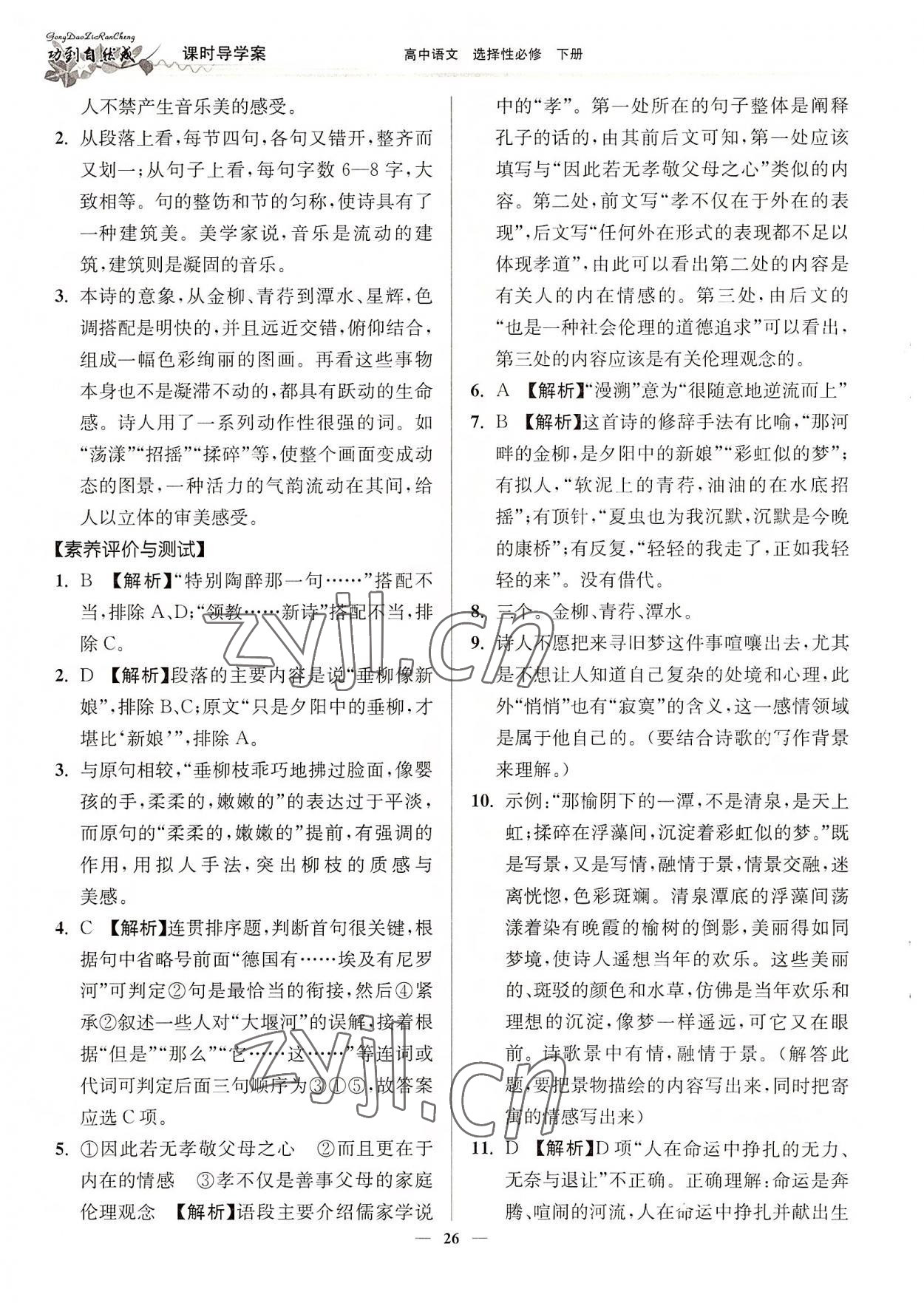 注:目前有些书本章节名称可能整理的还不是很完善,但都是按照顺序排列的,请同学们按照顺序仔细查找。练习册 2022年功到自然成高中语文选择性必修下册 答案主要是用来给同学们做完题方便对答案用的,请勿直接抄袭。