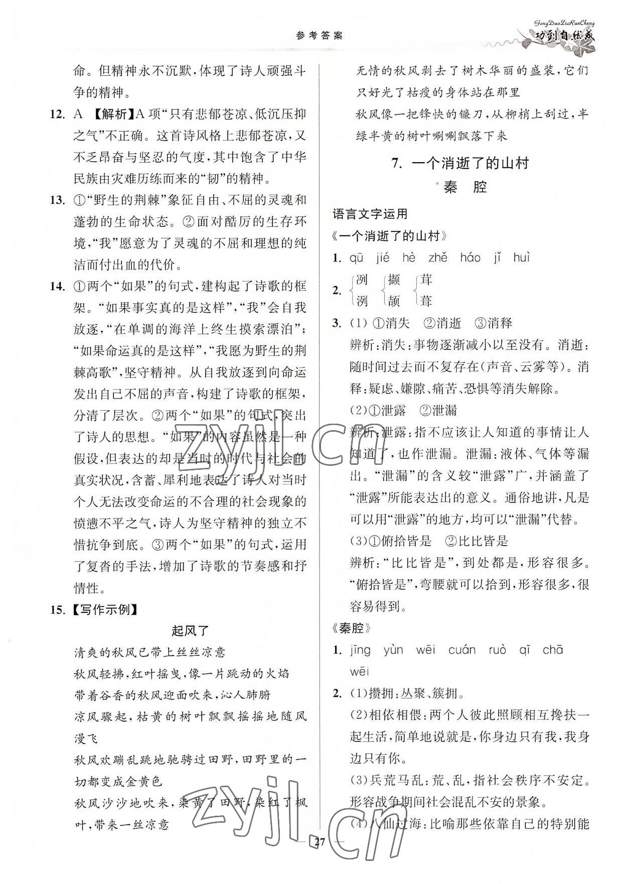 注:目前有些书本章节名称可能整理的还不是很完善,但都是按照顺序排列的,请同学们按照顺序仔细查找。练习册 2022年功到自然成高中语文选择性必修下册 答案主要是用来给同学们做完题方便对答案用的,请勿直接抄袭。