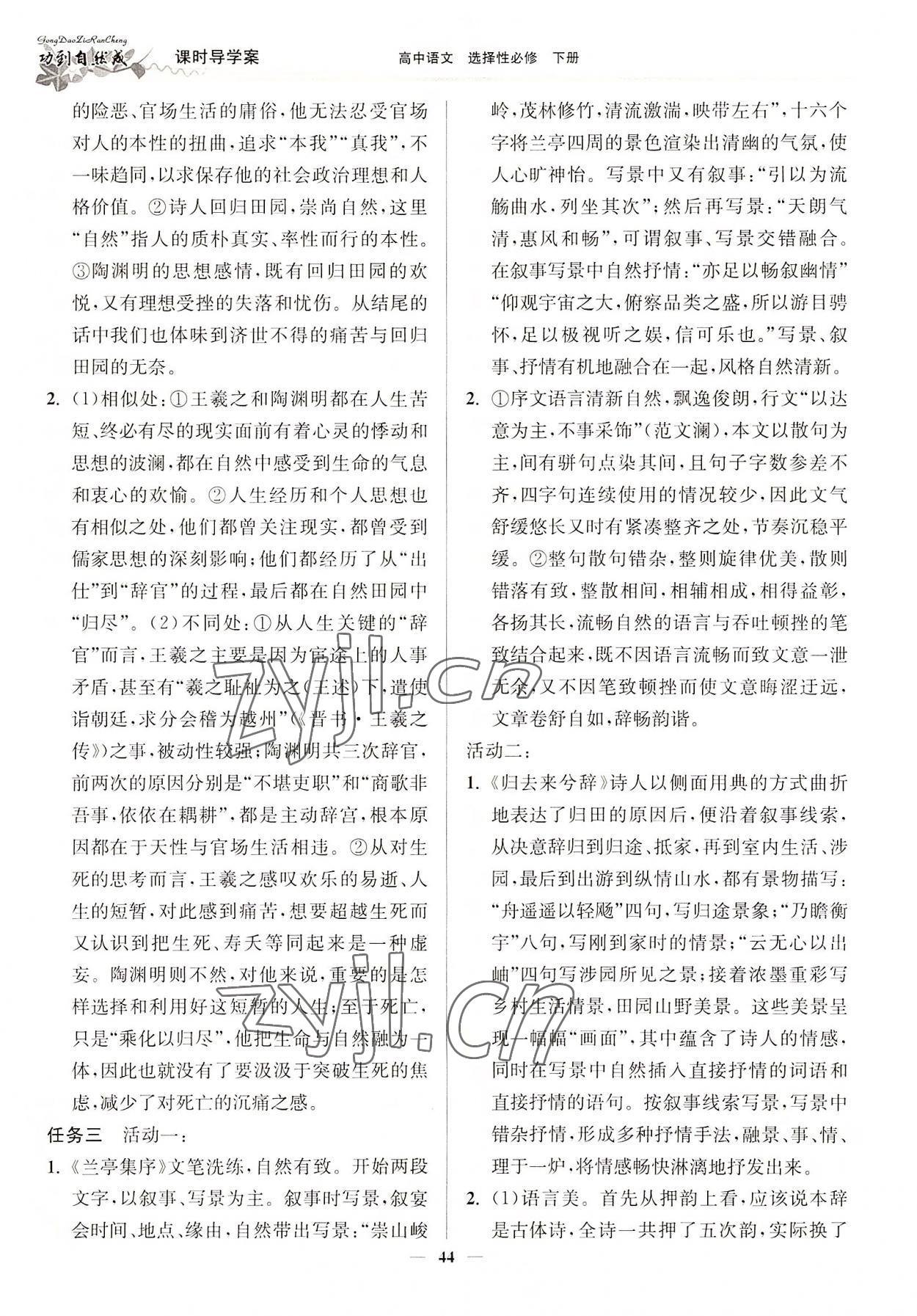 注:目前有些书本章节名称可能整理的还不是很完善,但都是按照顺序排列的,请同学们按照顺序仔细查找。练习册 2022年功到自然成高中语文选择性必修下册 答案主要是用来给同学们做完题方便对答案用的,请勿直接抄袭。