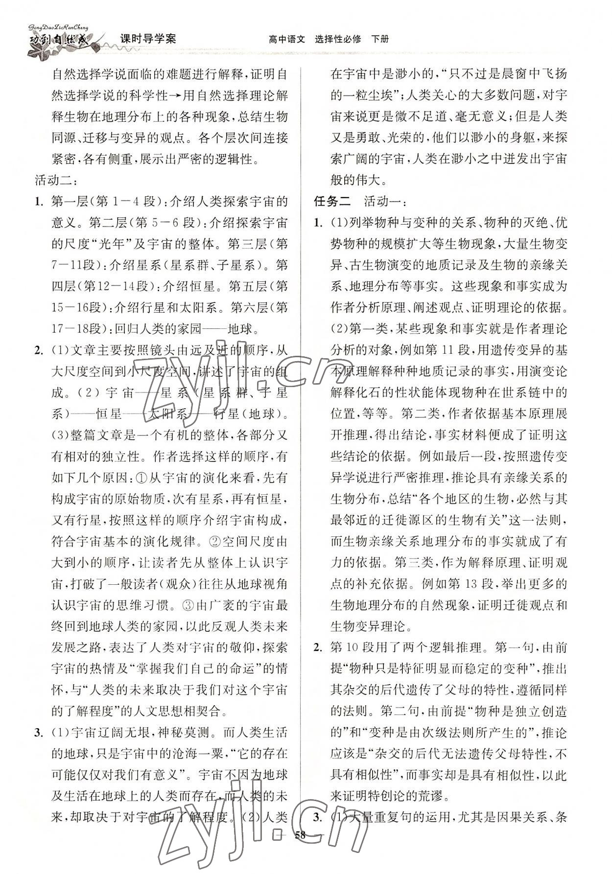 注:目前有些书本章节名称可能整理的还不是很完善,但都是按照顺序排列的,请同学们按照顺序仔细查找。练习册 2022年功到自然成高中语文选择性必修下册 答案主要是用来给同学们做完题方便对答案用的,请勿直接抄袭。
