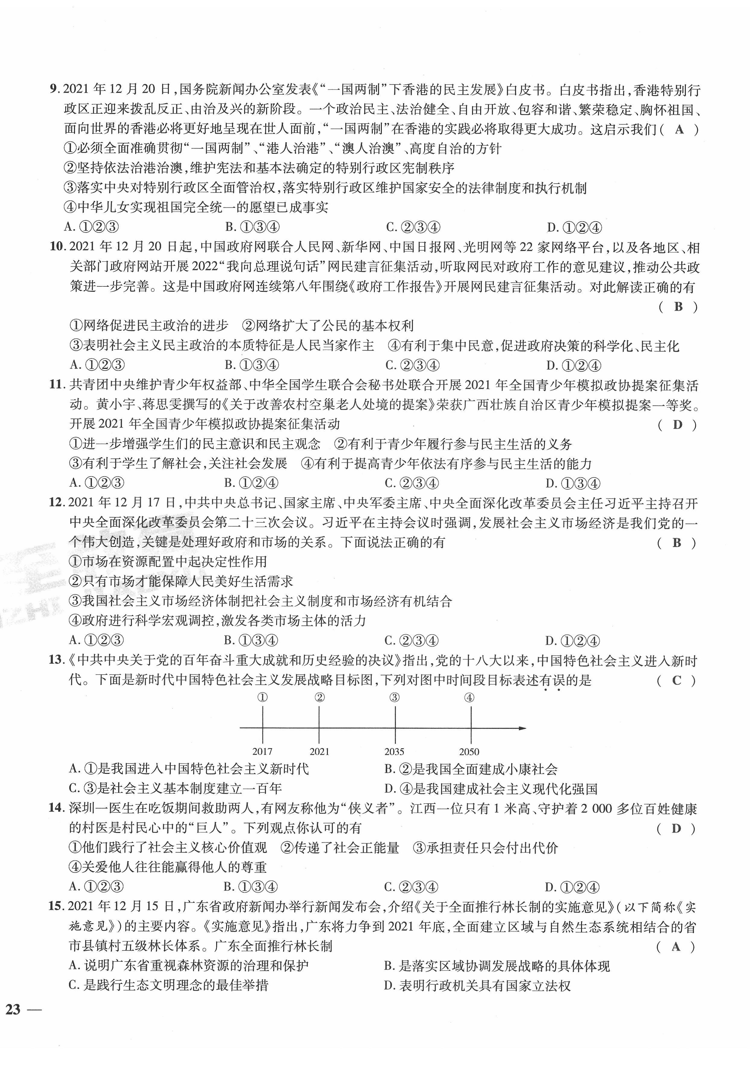 2022年新一线必刷卷道德与法治广东专版