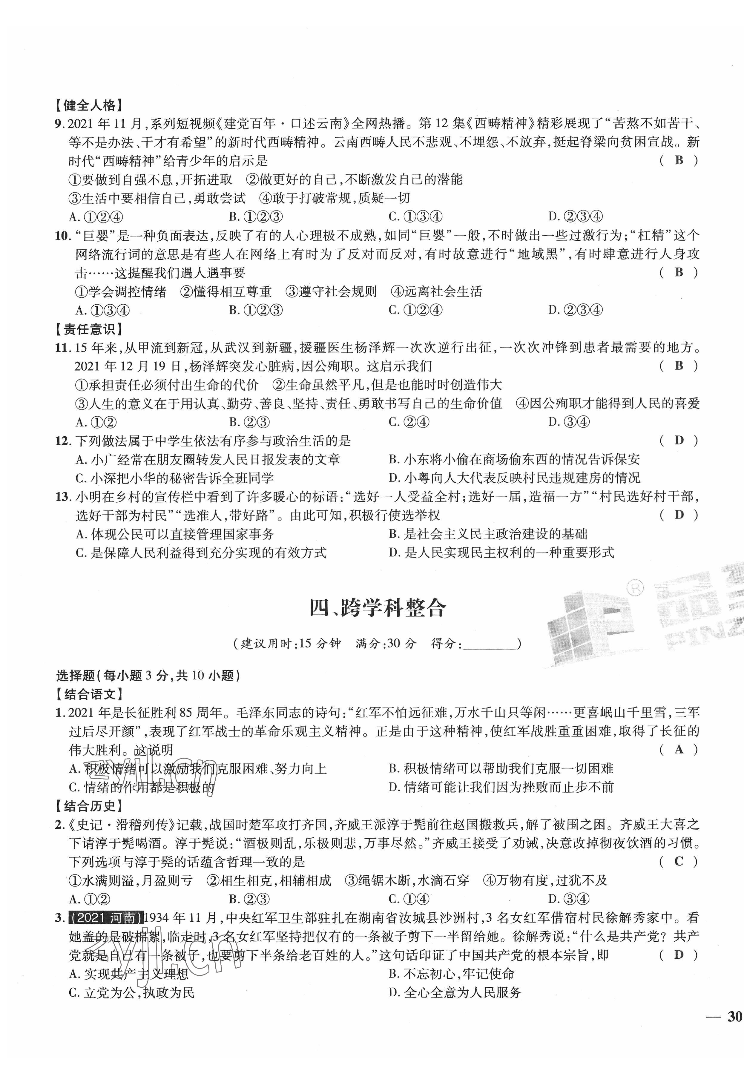 2022年新一线必刷卷道德与法治广东专版