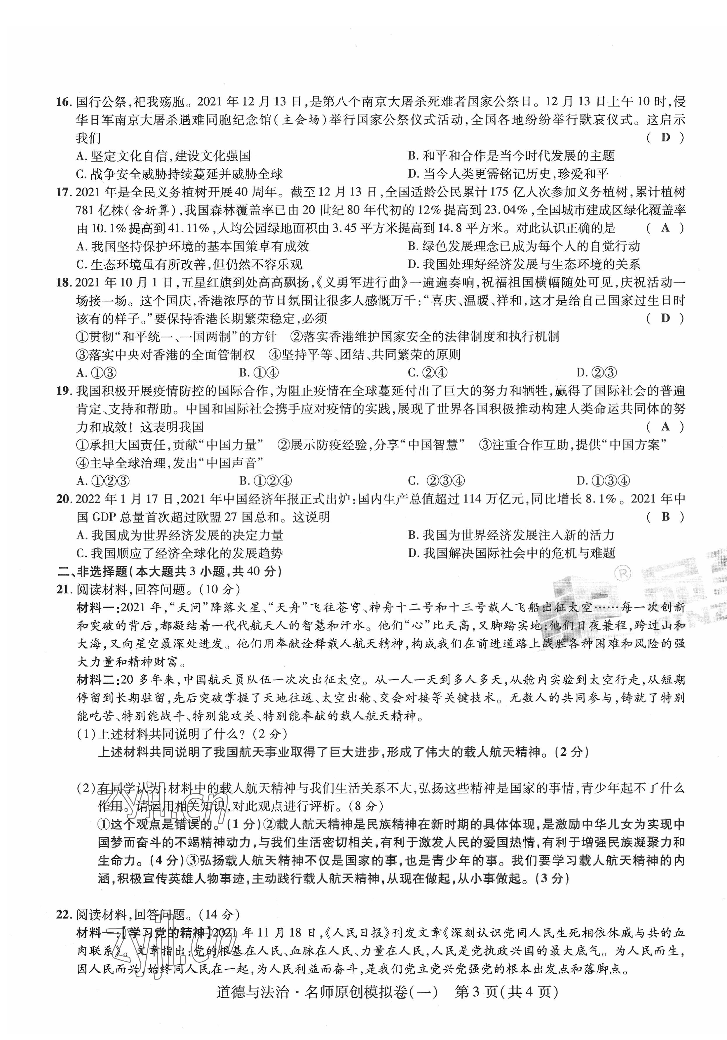 注:目前有些书本章节名称可能整理的还不是很完善,但都是按照顺序排列的,请同学们按照顺序仔细查找。练习册 2022年新一线必刷卷道德与法治广东专版 答案主要是用来给同学们做完题方便对答案用的,请勿直接抄袭。