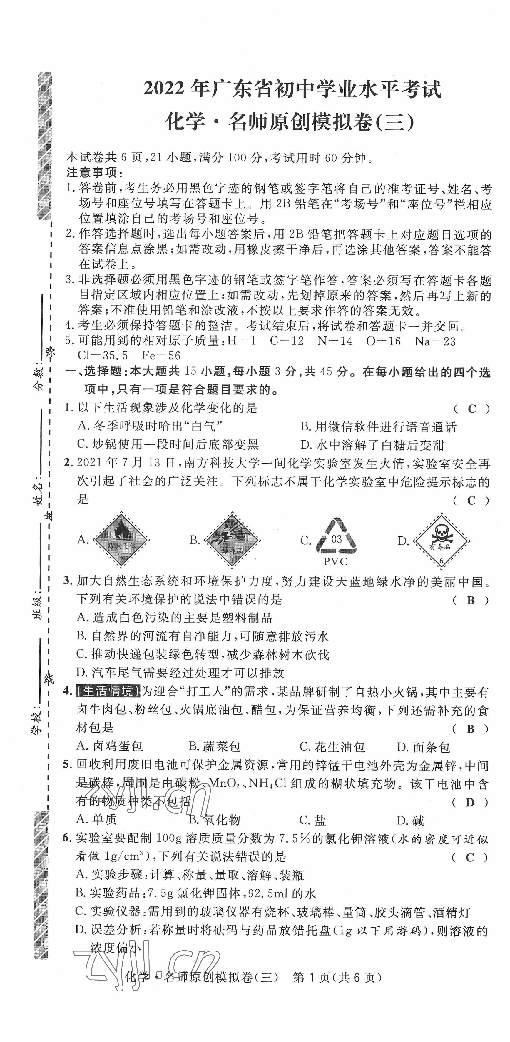 注:目前有些书本章节名称可能整理的还不是很完善,但都是按照顺序排列的,请同学们按照顺序仔细查找。练习册 2022年新一线必刷卷化学广东专版 答案主要是用来给同学们做完题方便对答案用的,请勿直接抄袭。