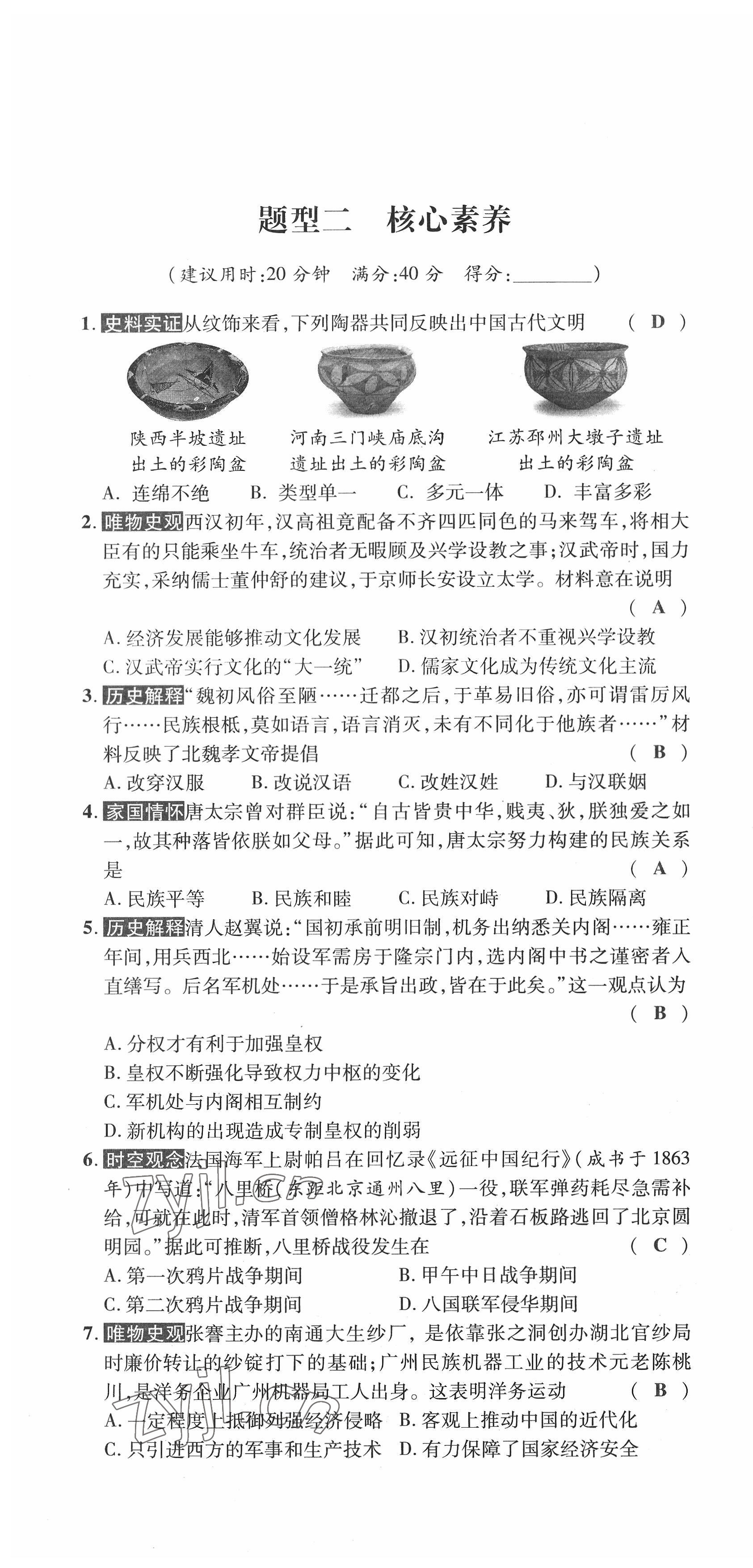 注:目前有些书本章节名称可能整理的还不是很完善,但都是按照顺序排列的,请同学们按照顺序仔细查找。练习册 2022年新一线必刷卷历史广东专版 答案主要是用来给同学们做完题方便对答案用的,请勿直接抄袭。