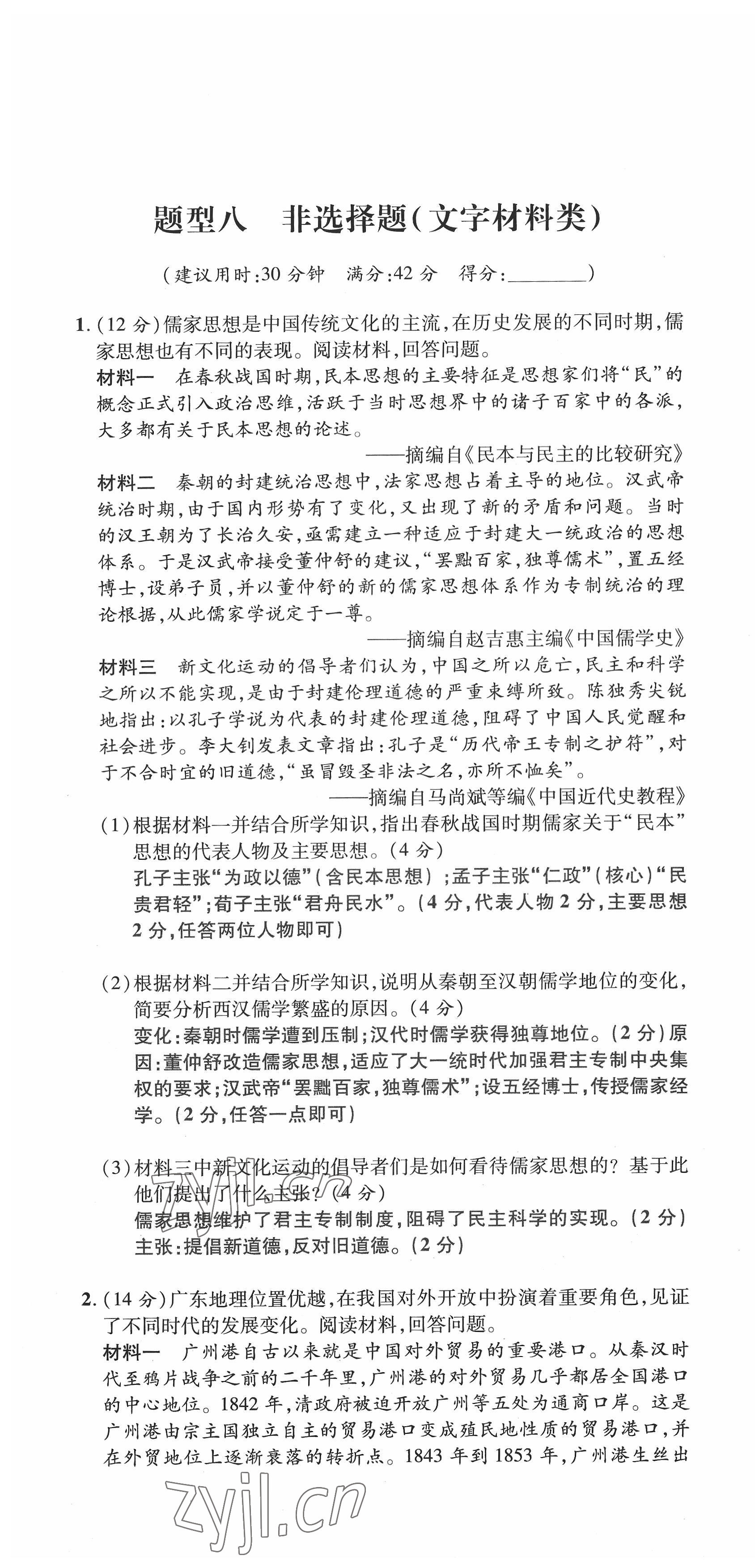 2022年新一线必刷卷历史广东专版