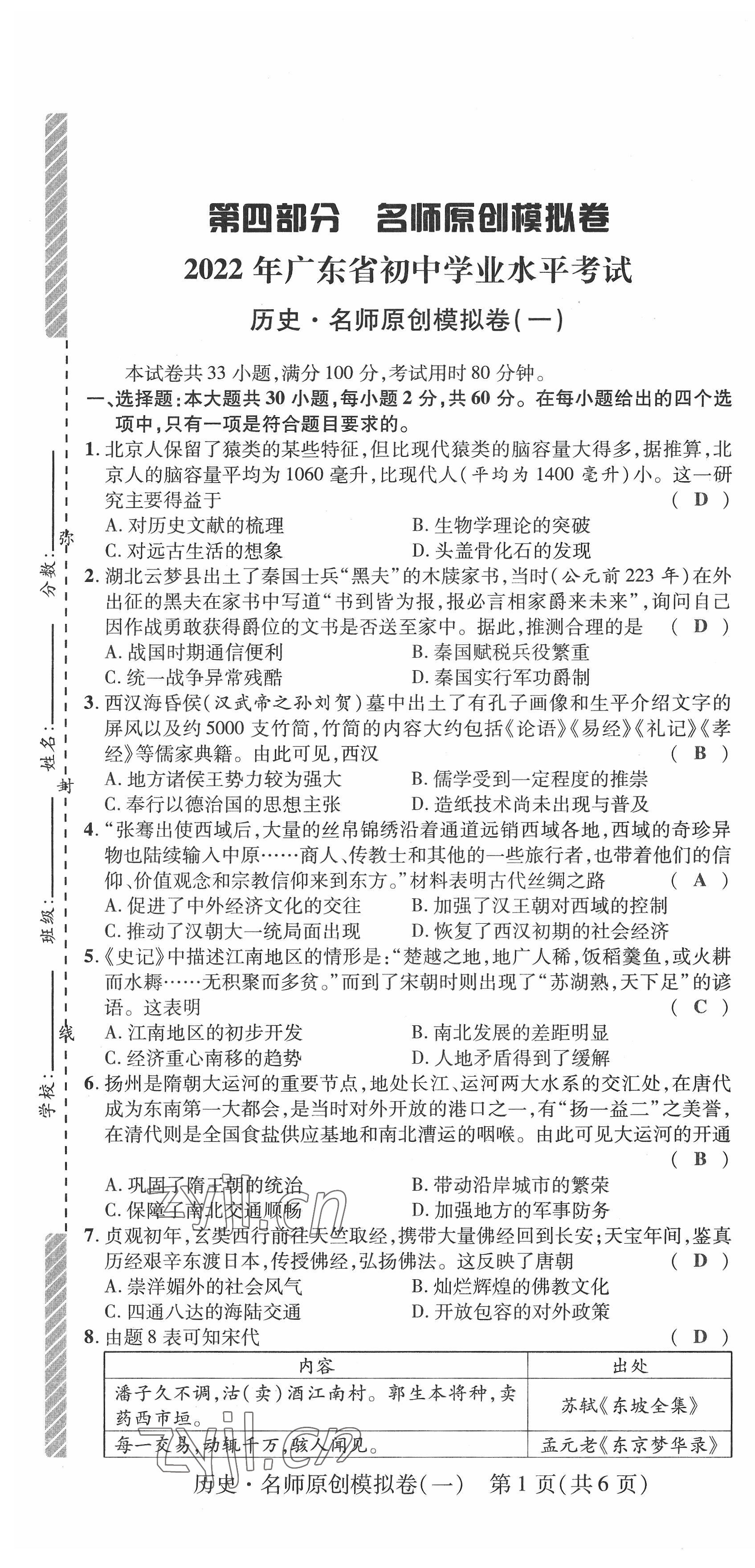 注:目前有些书本章节名称可能整理的还不是很完善,但都是按照顺序排列的,请同学们按照顺序仔细查找。练习册 2022年新一线必刷卷历史广东专版 答案主要是用来给同学们做完题方便对答案用的,请勿直接抄袭。