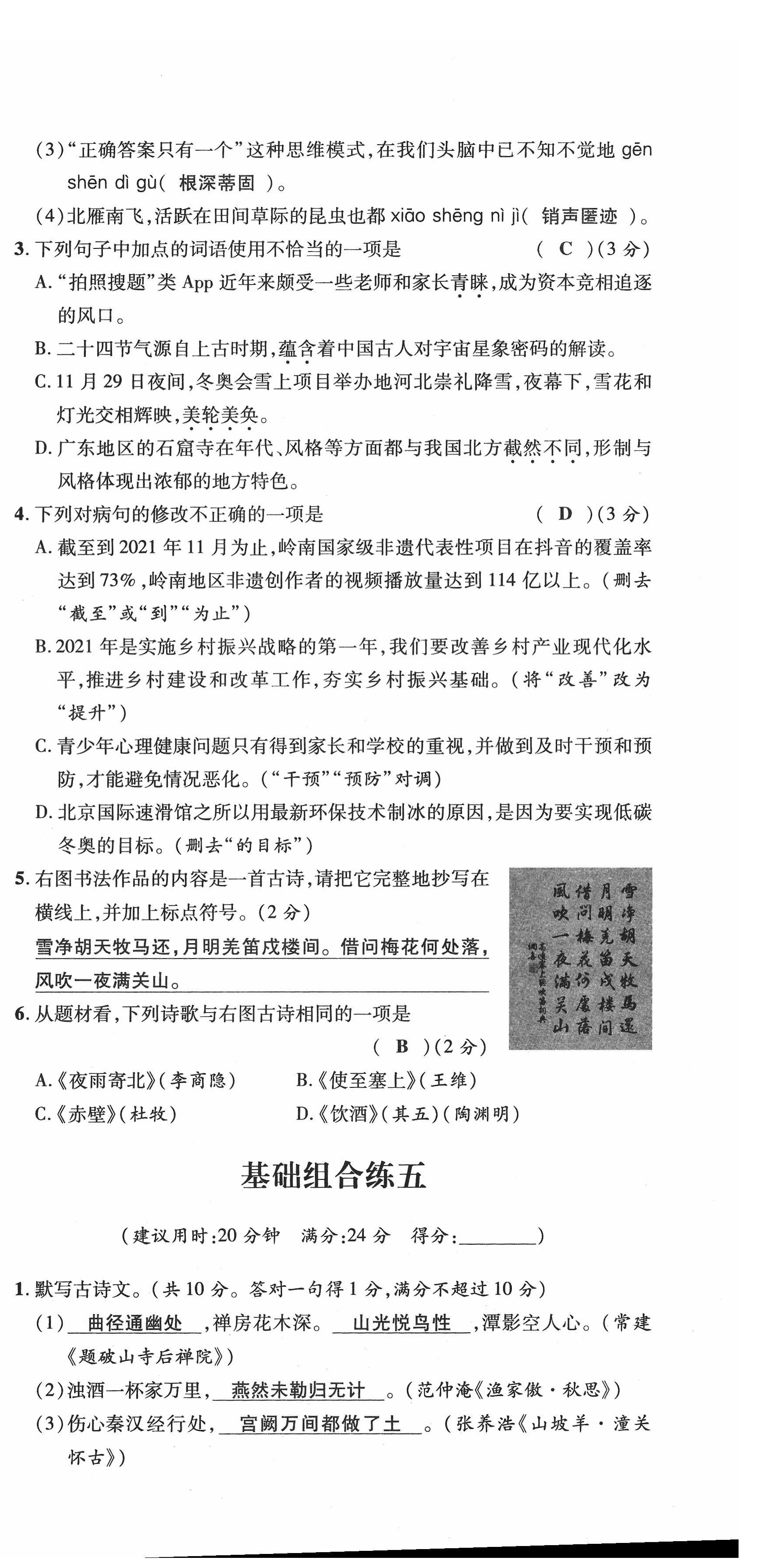 注:目前有些书本章节名称可能整理的还不是很完善,但都是按照顺序排列的,请同学们按照顺序仔细查找。练习册 2022年新一线必刷卷语文广东专版 答案主要是用来给同学们做完题方便对答案用的,请勿直接抄袭。