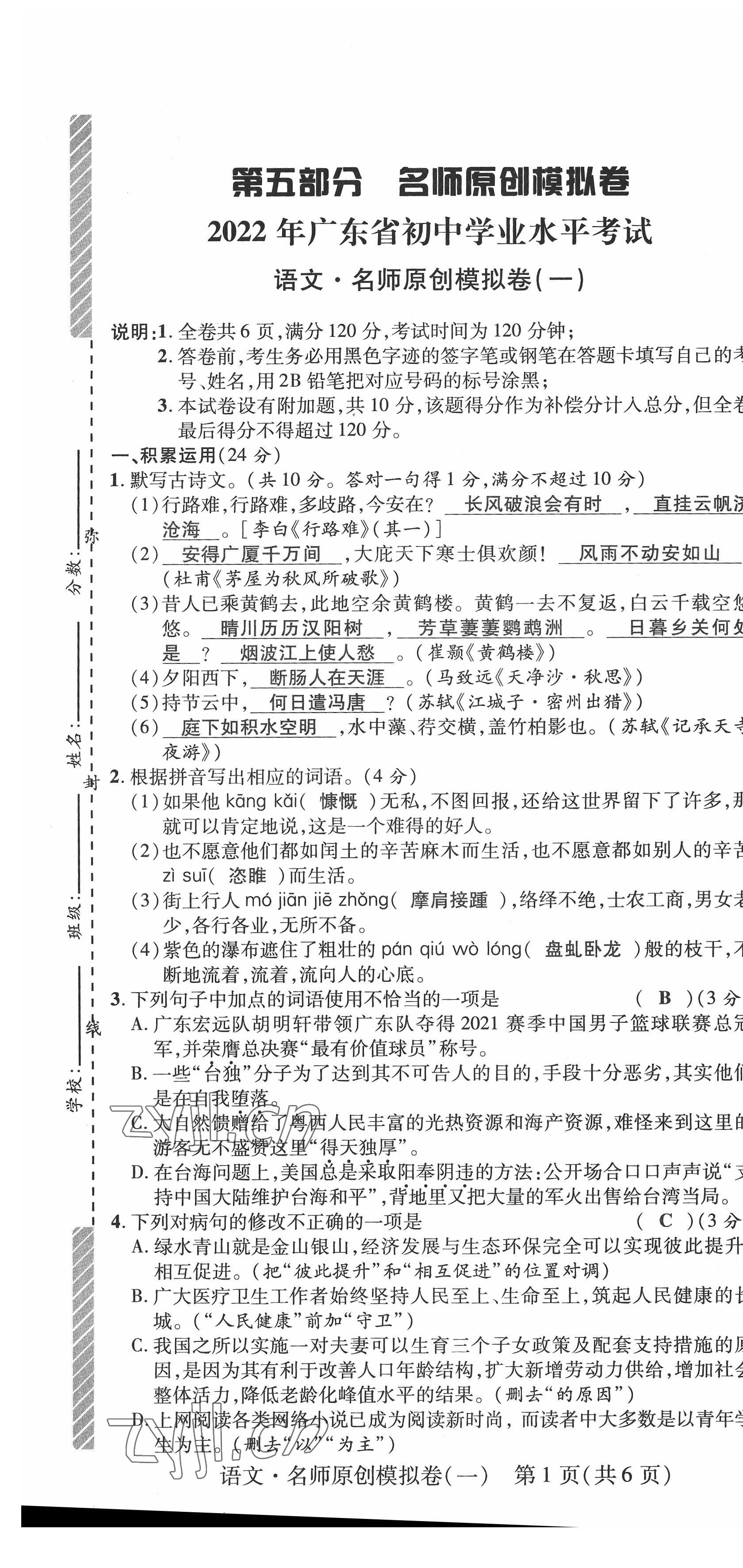 注:目前有些书本章节名称可能整理的还不是很完善,但都是按照顺序排列的,请同学们按照顺序仔细查找。练习册 2022年新一线必刷卷语文广东专版 答案主要是用来给同学们做完题方便对答案用的,请勿直接抄袭。