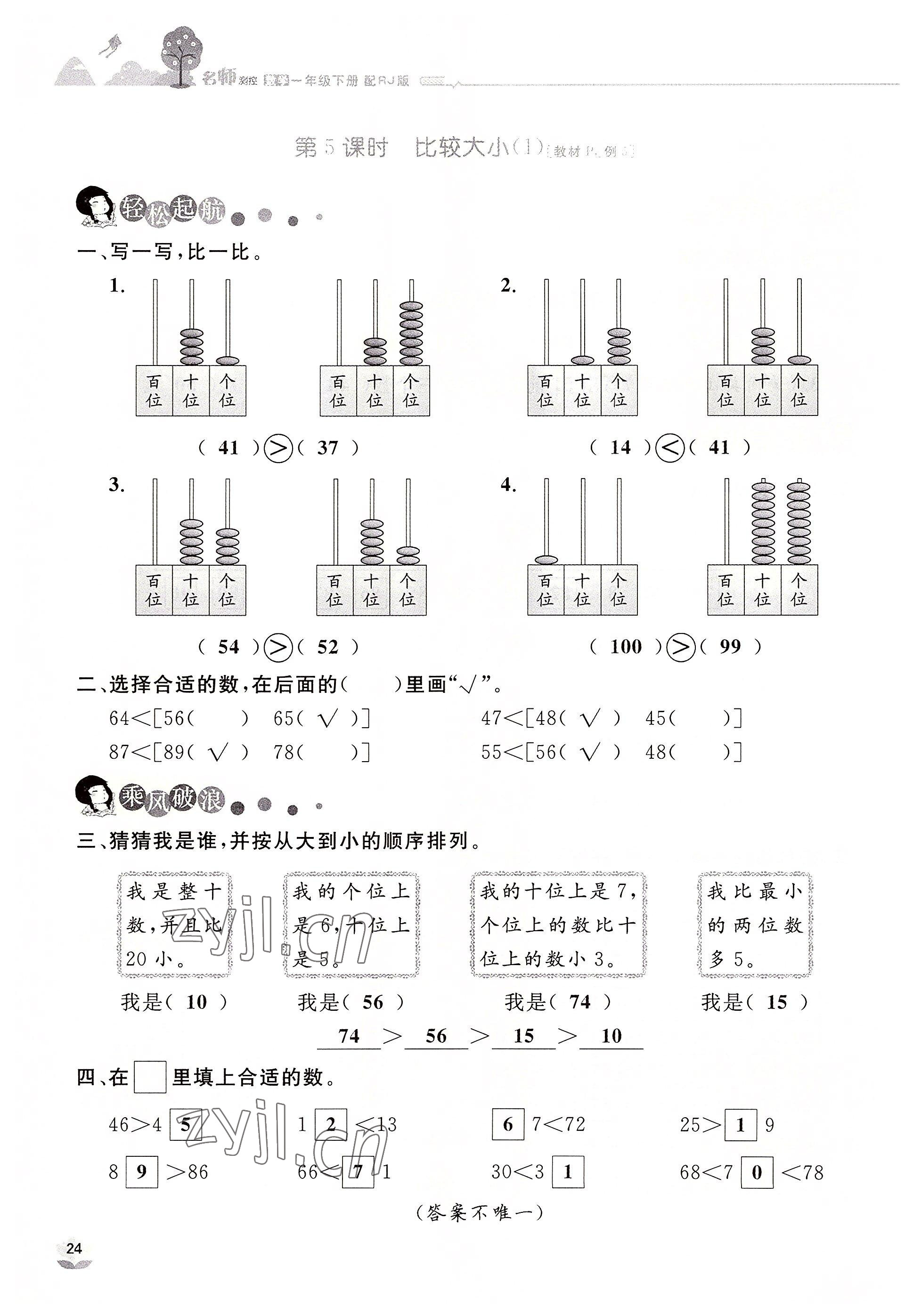 注:目前有些书本章节名称可能整理的还不是很完善,但都是按照顺序排列的,请同学们按照顺序仔细查找。练习册 2022年名师测控一年级数学下册人教版鄂黄专版 答案主要是用来给同学们做完题方便对答案用的,请勿直接抄袭。