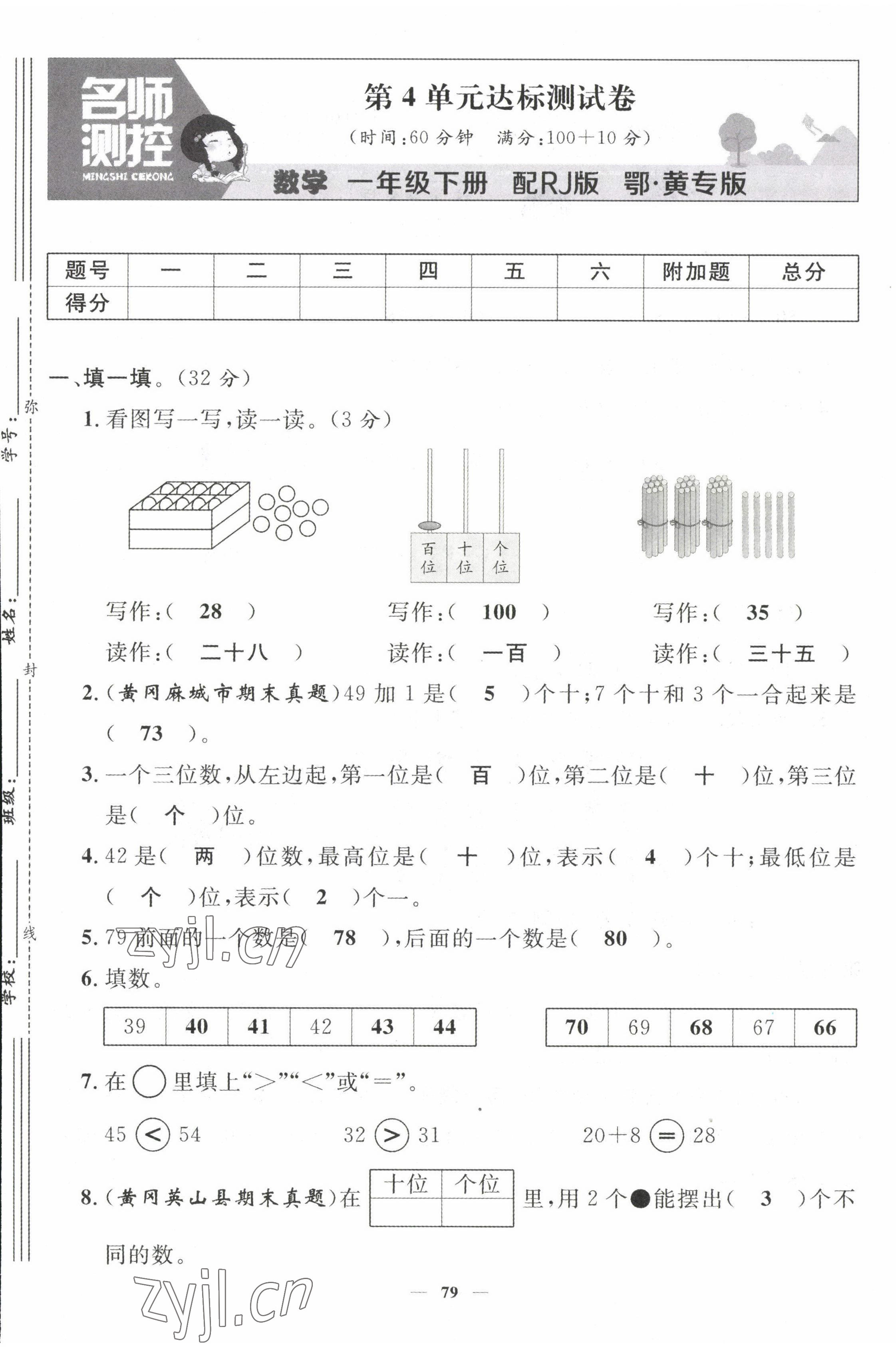 2022年名师测控一年级数学下册人教版鄂黄专版