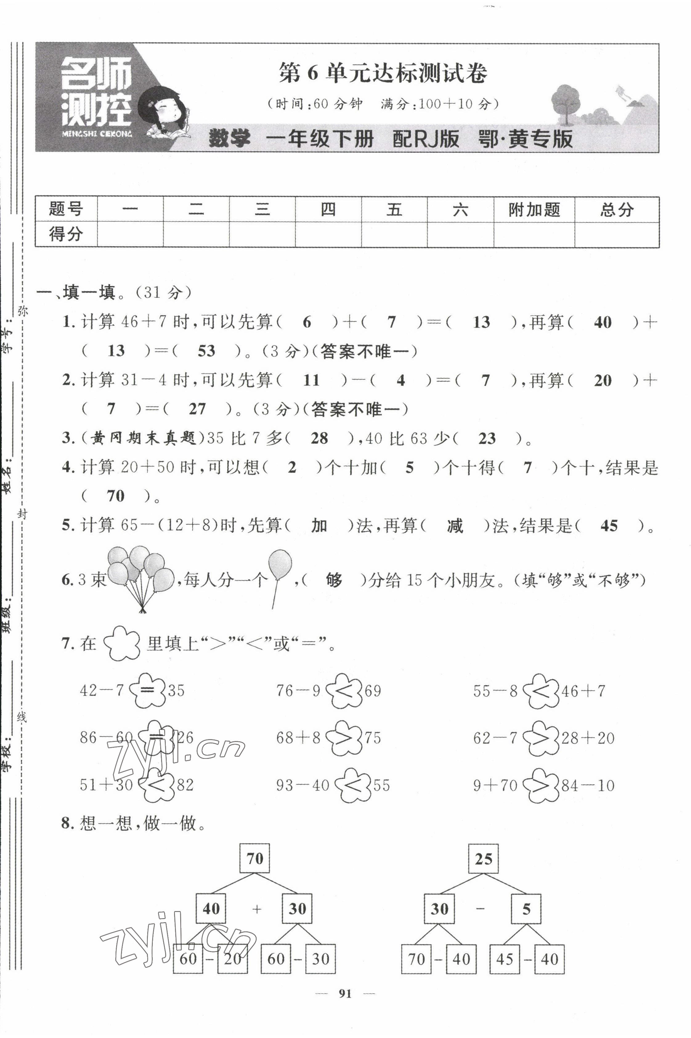 2022年名师测控一年级数学下册人教版鄂黄专版