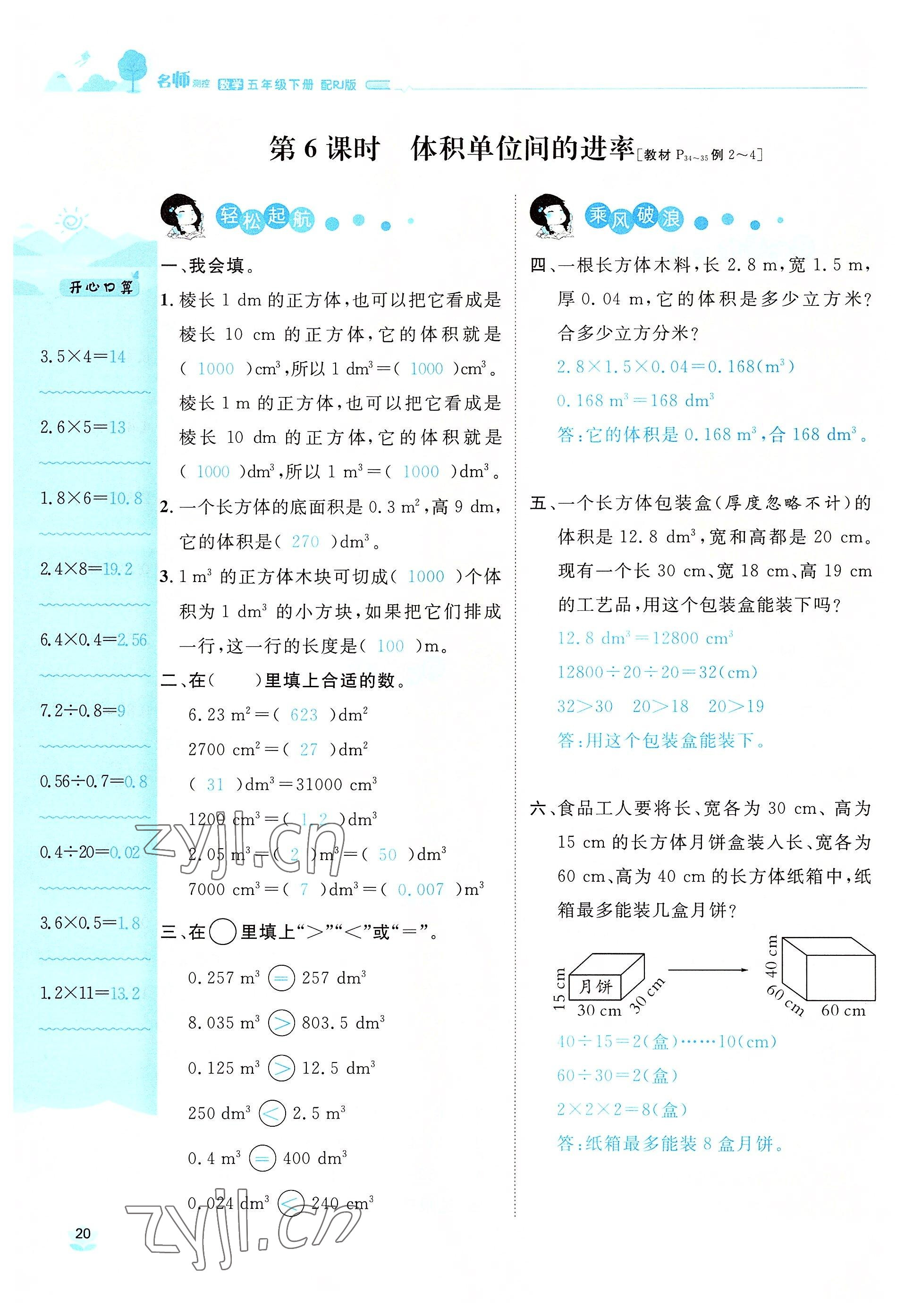 注:目前有些书本章节名称可能整理的还不是很完善,但都是按照顺序排列的,请同学们按照顺序仔细查找。练习册 2022年名师测控五年级数学下册人教版鄂黄专版 答案主要是用来给同学们做完题方便对答案用的,请勿直接抄袭。