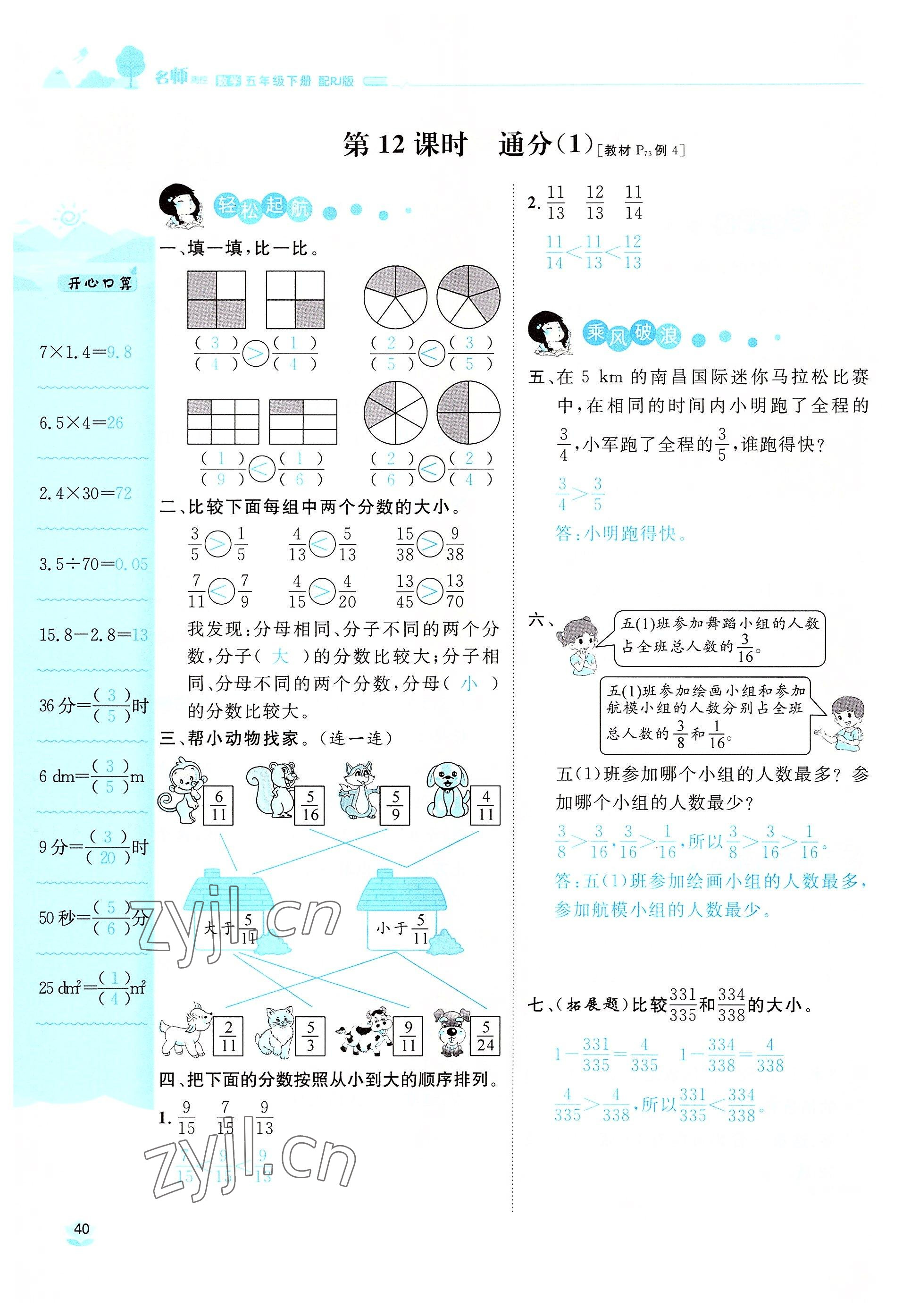 2022年名师测控五年级数学下册人教版鄂黄专版