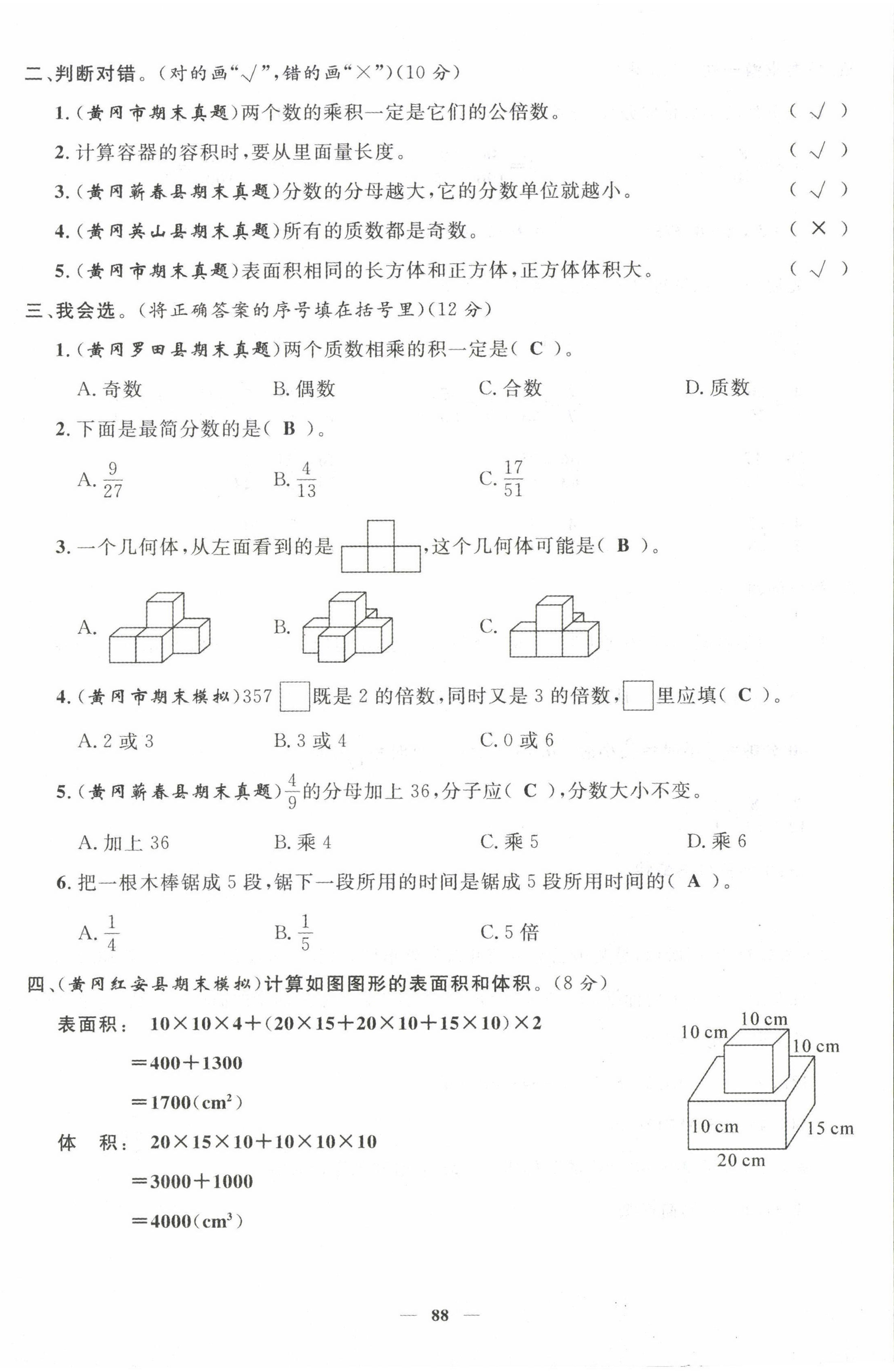 2022年名师测控五年级数学下册人教版鄂黄专版
