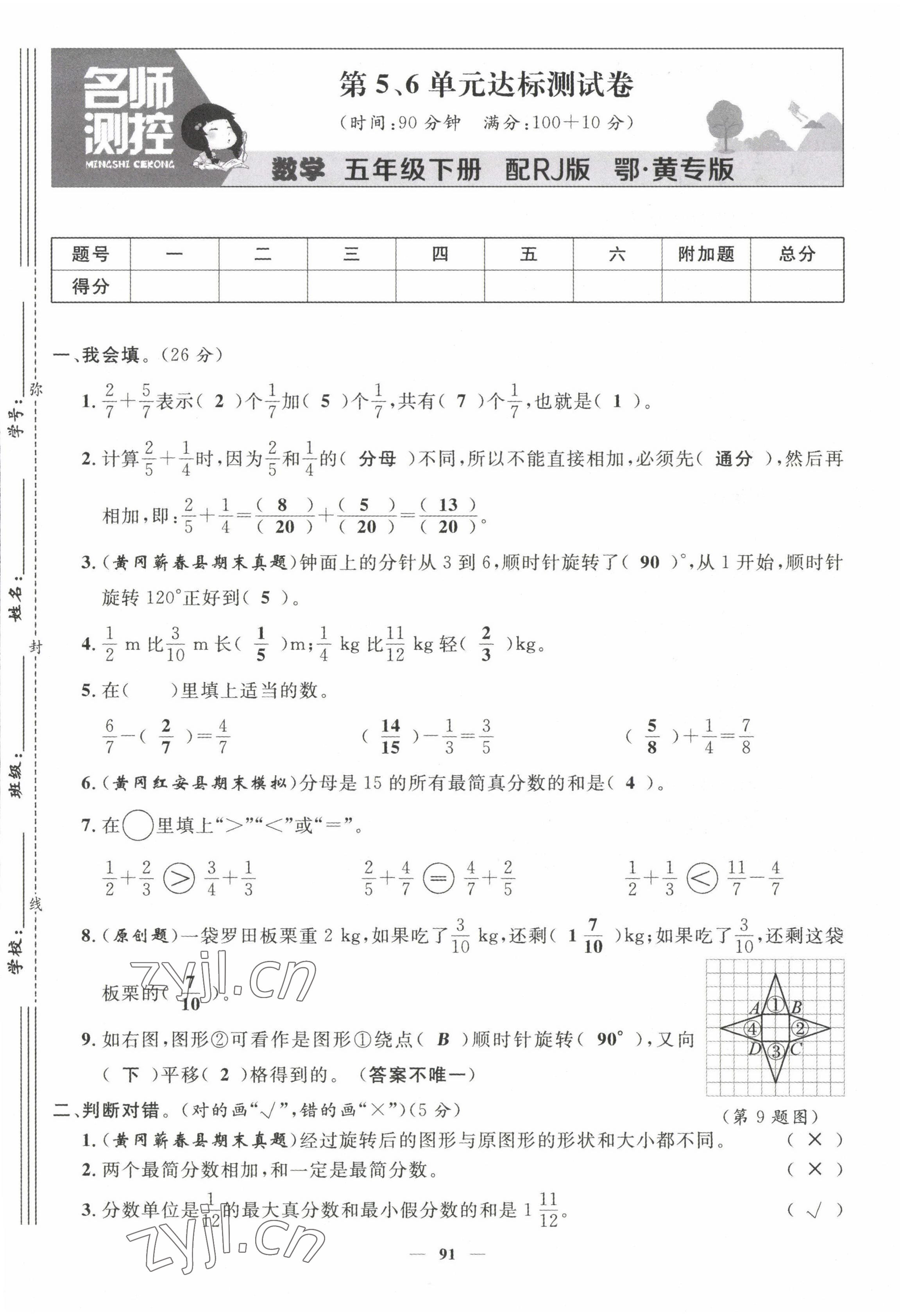2022年名师测控五年级数学下册人教版鄂黄专版