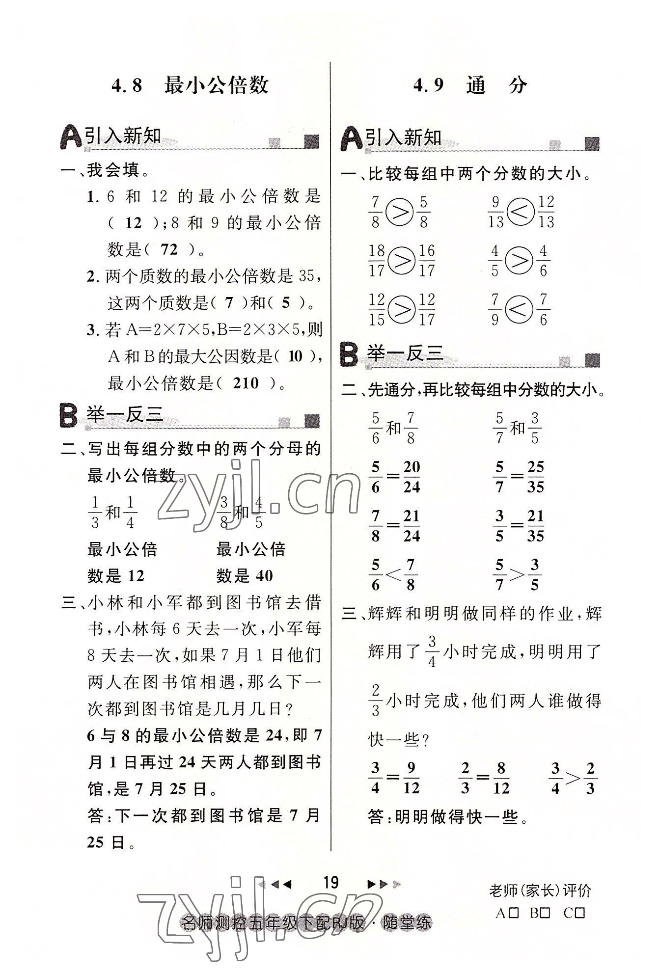 注:目前有些书本章节名称可能整理的还不是很完善,但都是按照顺序排列的,请同学们按照顺序仔细查找。练习册 2022年名师测控五年级数学下册人教版鄂黄专版 答案主要是用来给同学们做完题方便对答案用的,请勿直接抄袭。