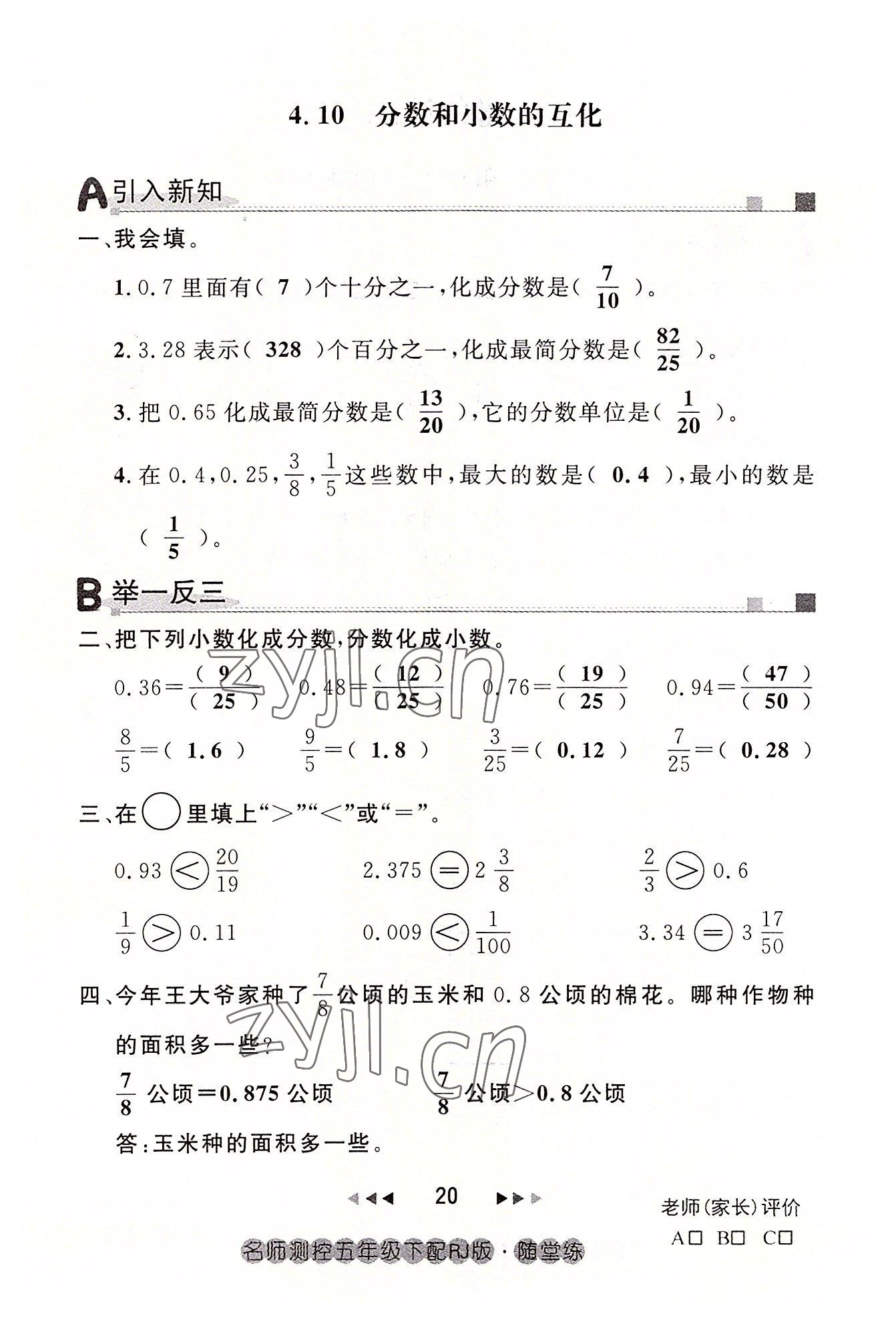 注:目前有些书本章节名称可能整理的还不是很完善,但都是按照顺序排列的,请同学们按照顺序仔细查找。练习册 2022年名师测控五年级数学下册人教版鄂黄专版 答案主要是用来给同学们做完题方便对答案用的,请勿直接抄袭。