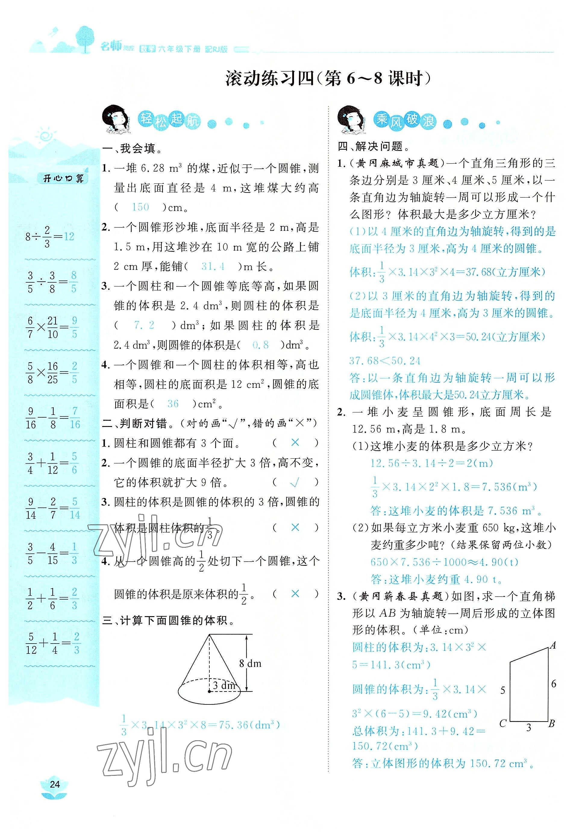 注:目前有些书本章节名称可能整理的还不是很完善,但都是按照顺序排列的,请同学们按照顺序仔细查找。练习册 2022年名师测控六年级数学下册人教版鄂黄专版 答案主要是用来给同学们做完题方便对答案用的,请勿直接抄袭。