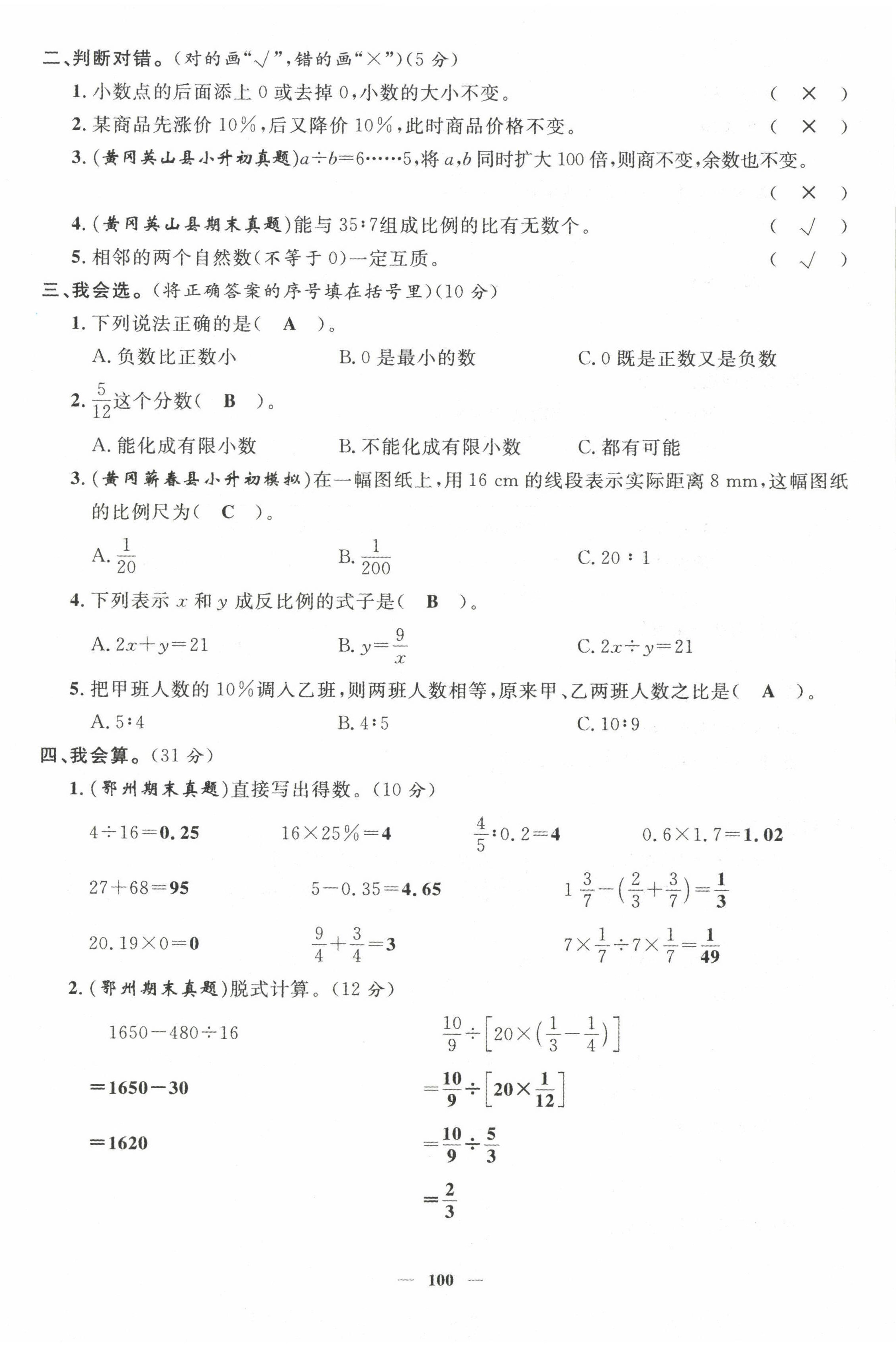 2022年名师测控六年级数学下册人教版鄂黄专版