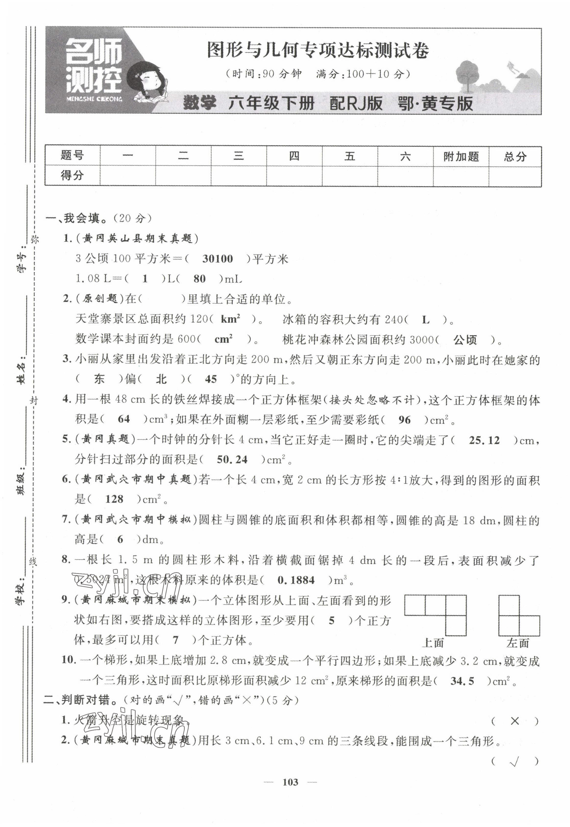 注:目前有些书本章节名称可能整理的还不是很完善,但都是按照顺序排列的,请同学们按照顺序仔细查找。练习册 2022年名师测控六年级数学下册人教版鄂黄专版 答案主要是用来给同学们做完题方便对答案用的,请勿直接抄袭。