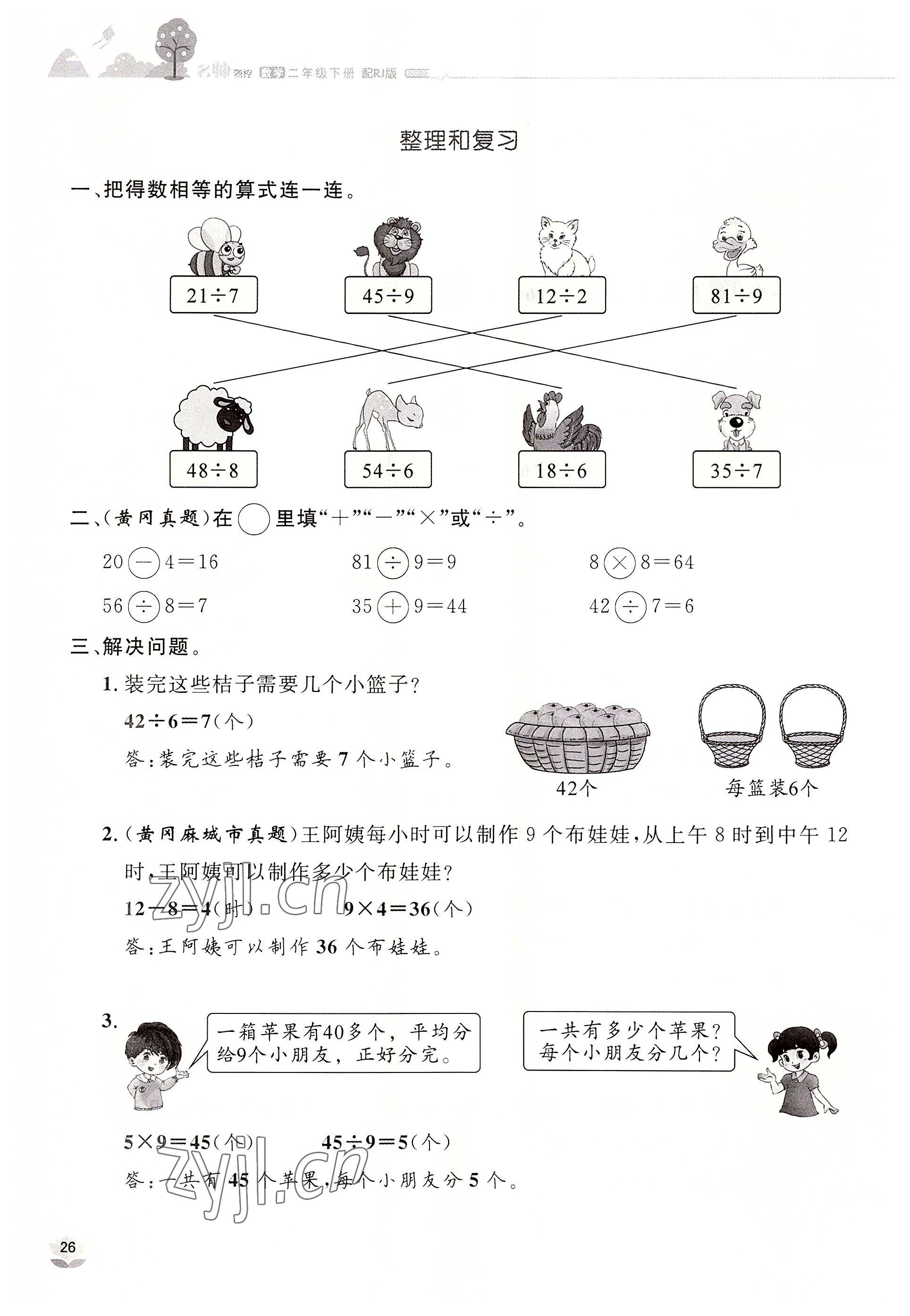 注:目前有些书本章节名称可能整理的还不是很完善,但都是按照顺序排列的,请同学们按照顺序仔细查找。练习册 2022年名师测控二年级数学下册人教版鄂黄专版 答案主要是用来给同学们做完题方便对答案用的,请勿直接抄袭。