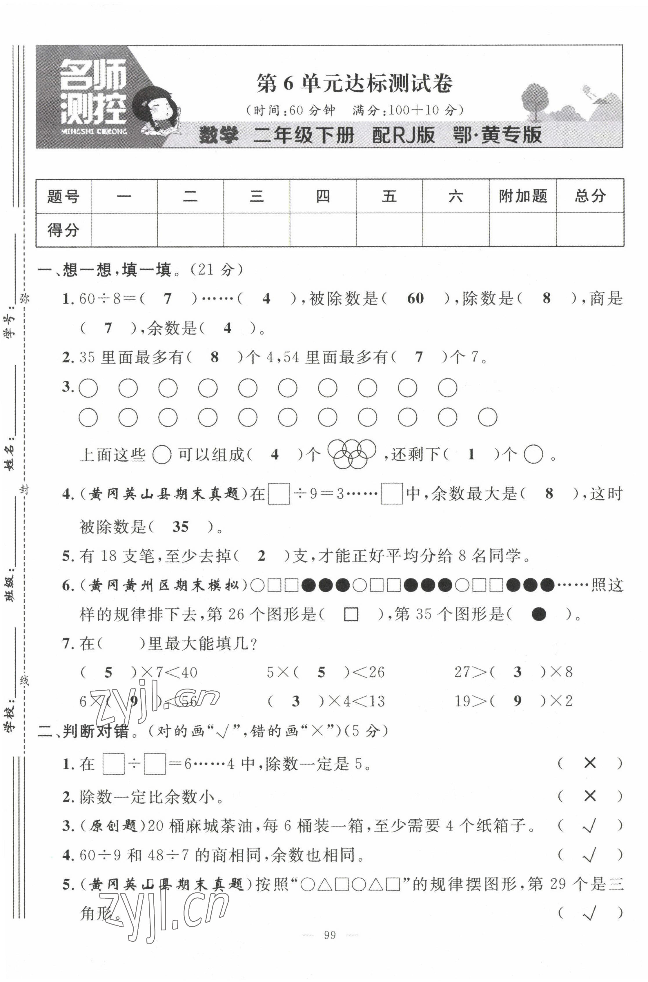 2022年名师测控二年级数学下册人教版鄂黄专版