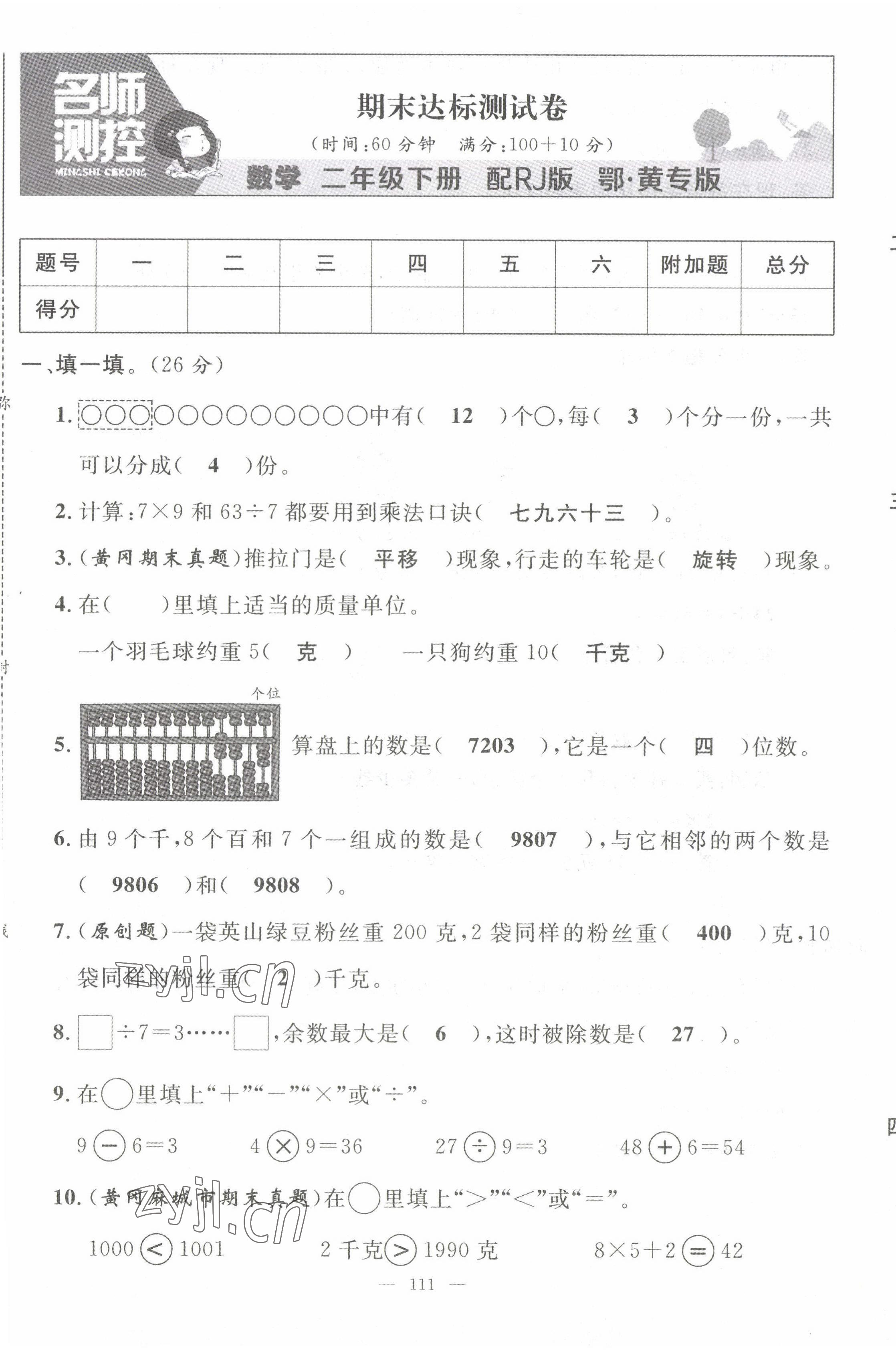 注:目前有些书本章节名称可能整理的还不是很完善,但都是按照顺序排列的,请同学们按照顺序仔细查找。练习册 2022年名师测控二年级数学下册人教版鄂黄专版 答案主要是用来给同学们做完题方便对答案用的,请勿直接抄袭。