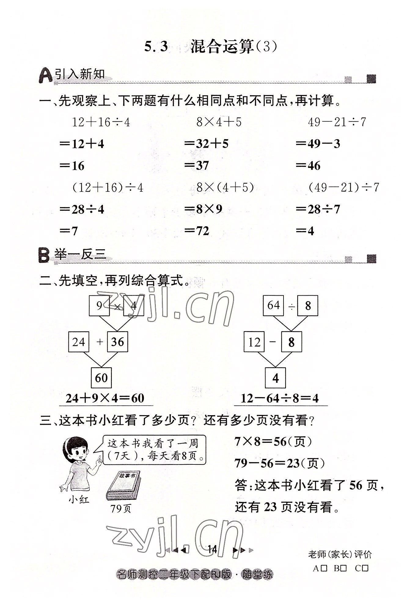 注:目前有些书本章节名称可能整理的还不是很完善,但都是按照顺序排列的,请同学们按照顺序仔细查找。练习册 2022年名师测控二年级数学下册人教版鄂黄专版 答案主要是用来给同学们做完题方便对答案用的,请勿直接抄袭。