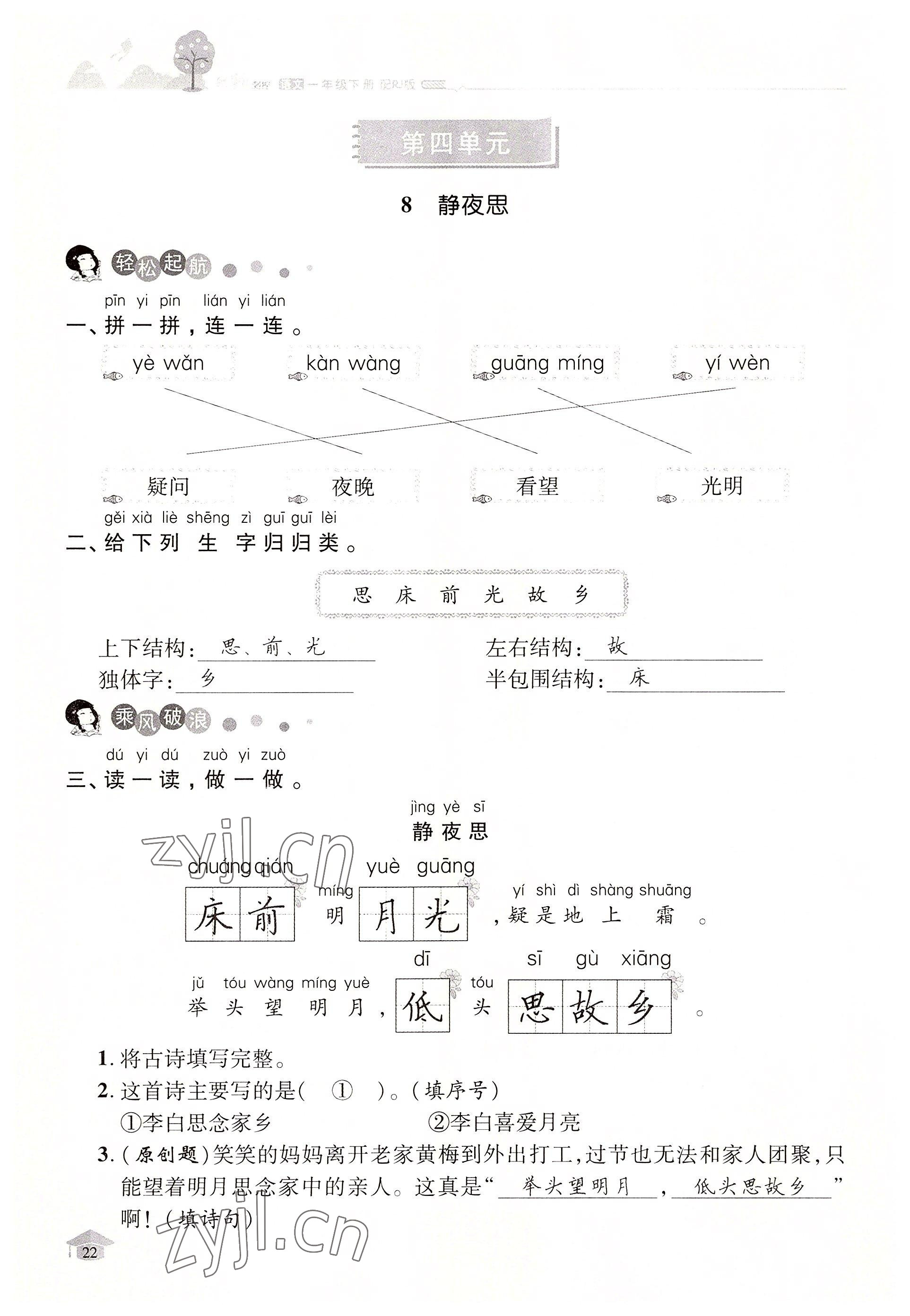 2022年名师测控一年级语文下册人教版鄂黄专版