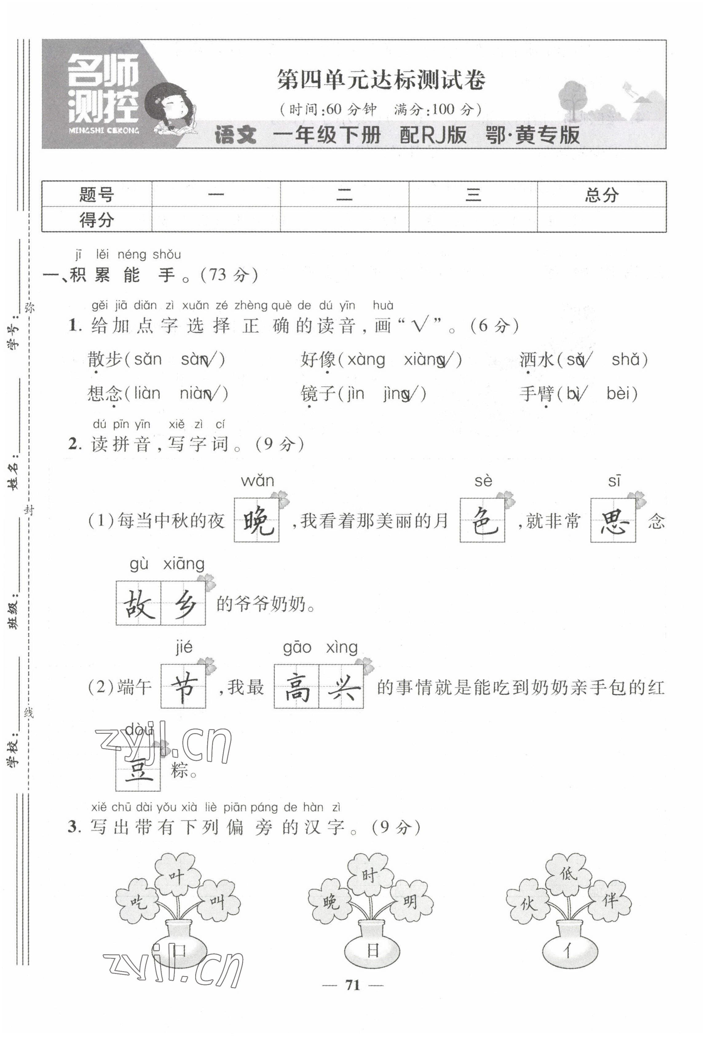 2022年名师测控一年级语文下册人教版鄂黄专版