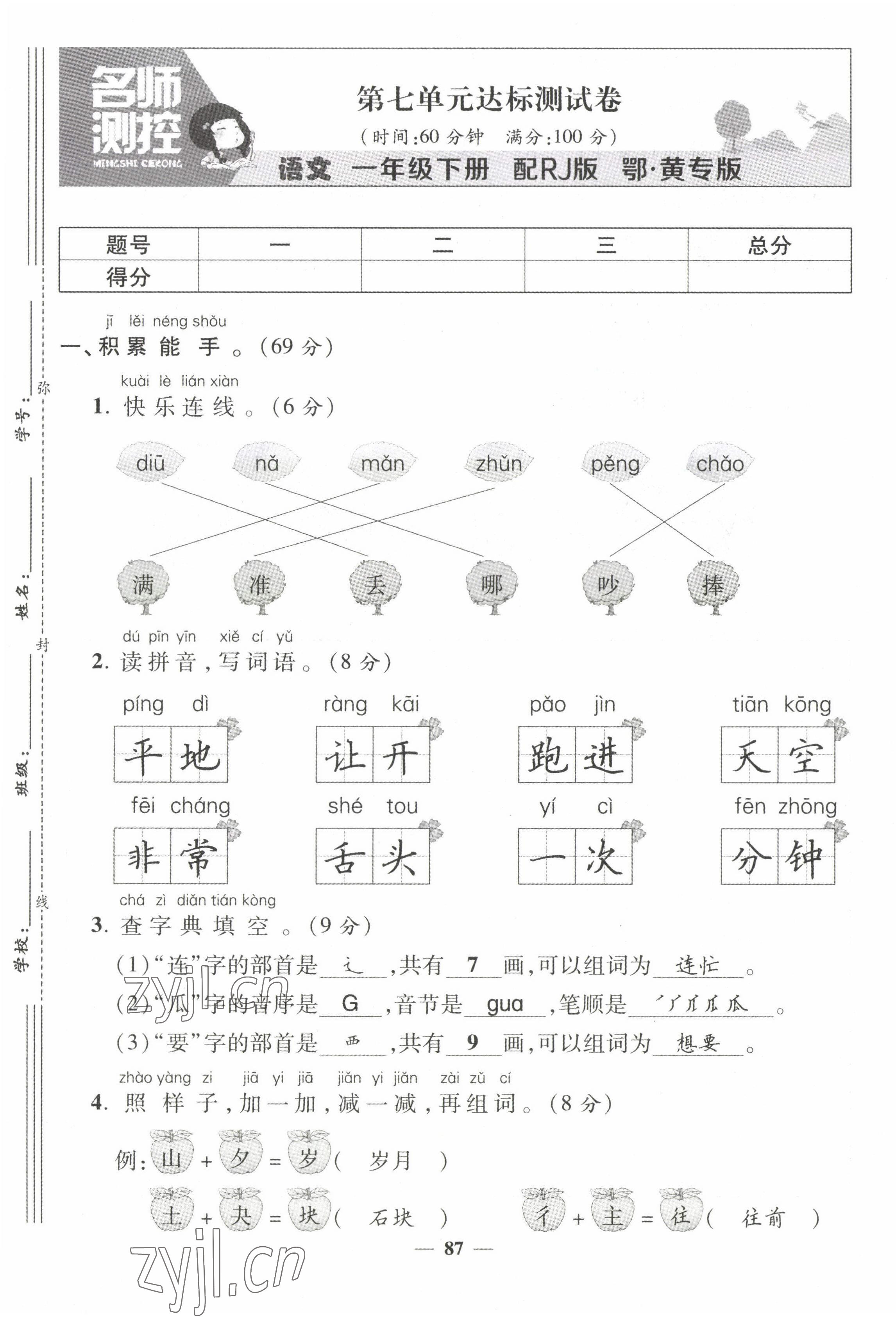 2022年名师测控一年级语文下册人教版鄂黄专版