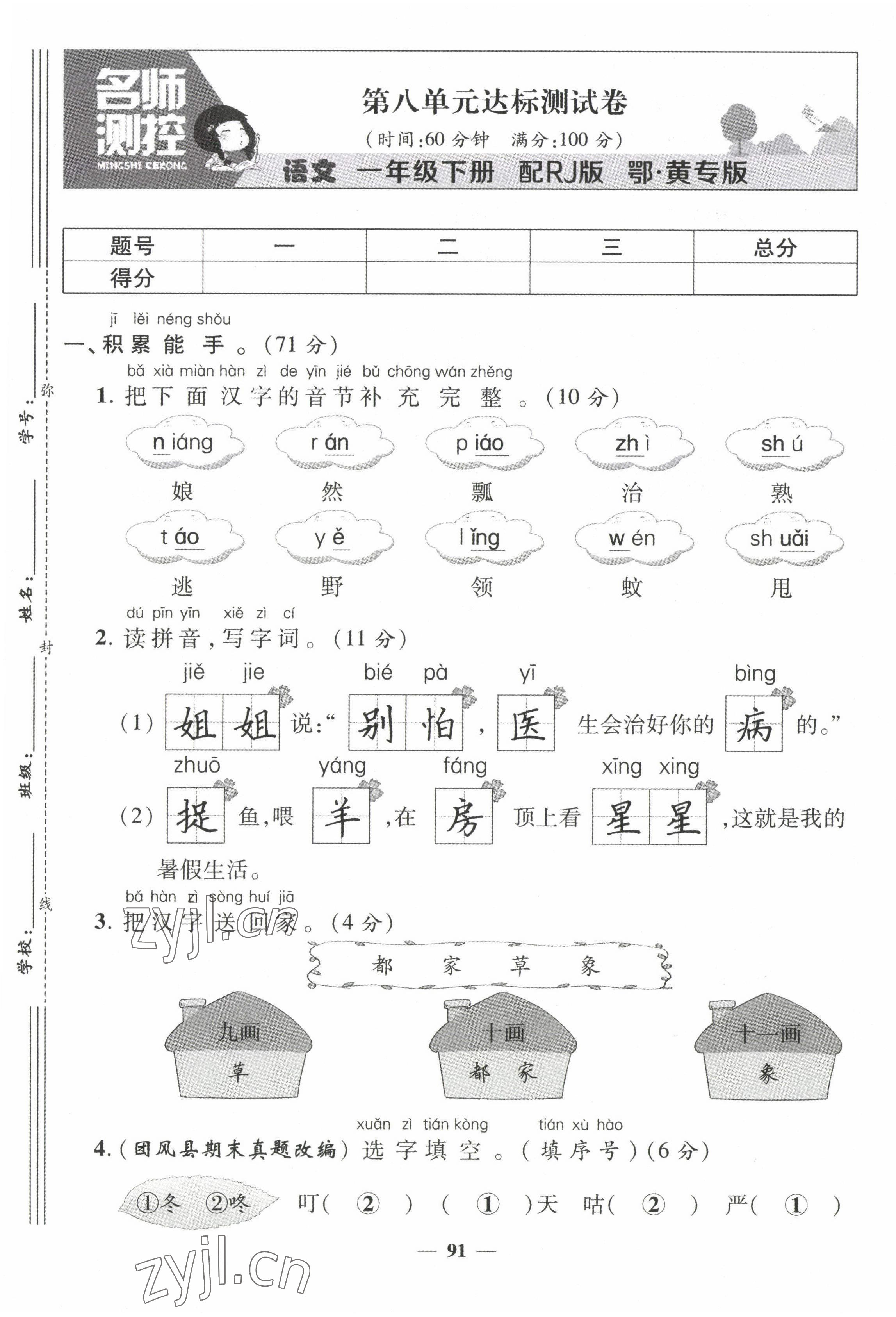 2022年名师测控一年级语文下册人教版鄂黄专版