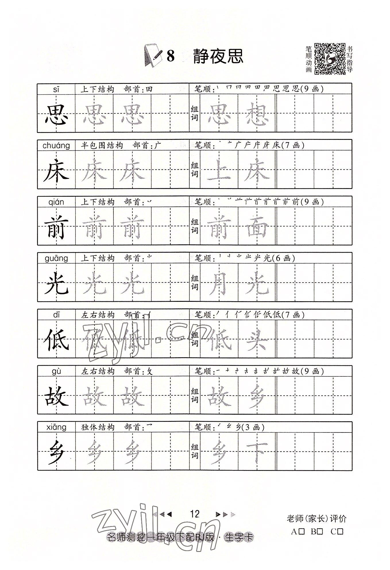2022年名师测控一年级语文下册人教版鄂黄专版