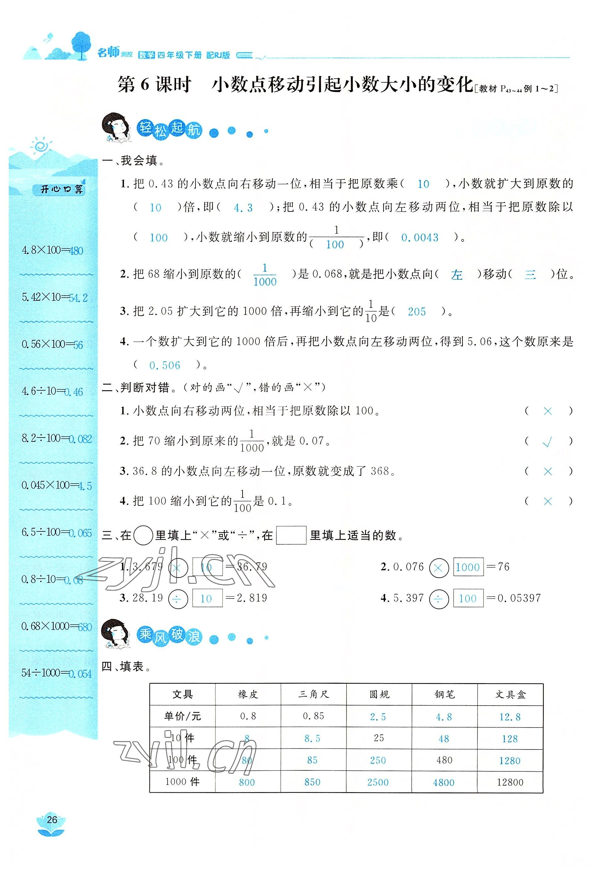 注:目前有些书本章节名称可能整理的还不是很完善,但都是按照顺序排列的,请同学们按照顺序仔细查找。练习册 2022年名师测控四年级数学下册人教版鄂黄专版 答案主要是用来给同学们做完题方便对答案用的,请勿直接抄袭。