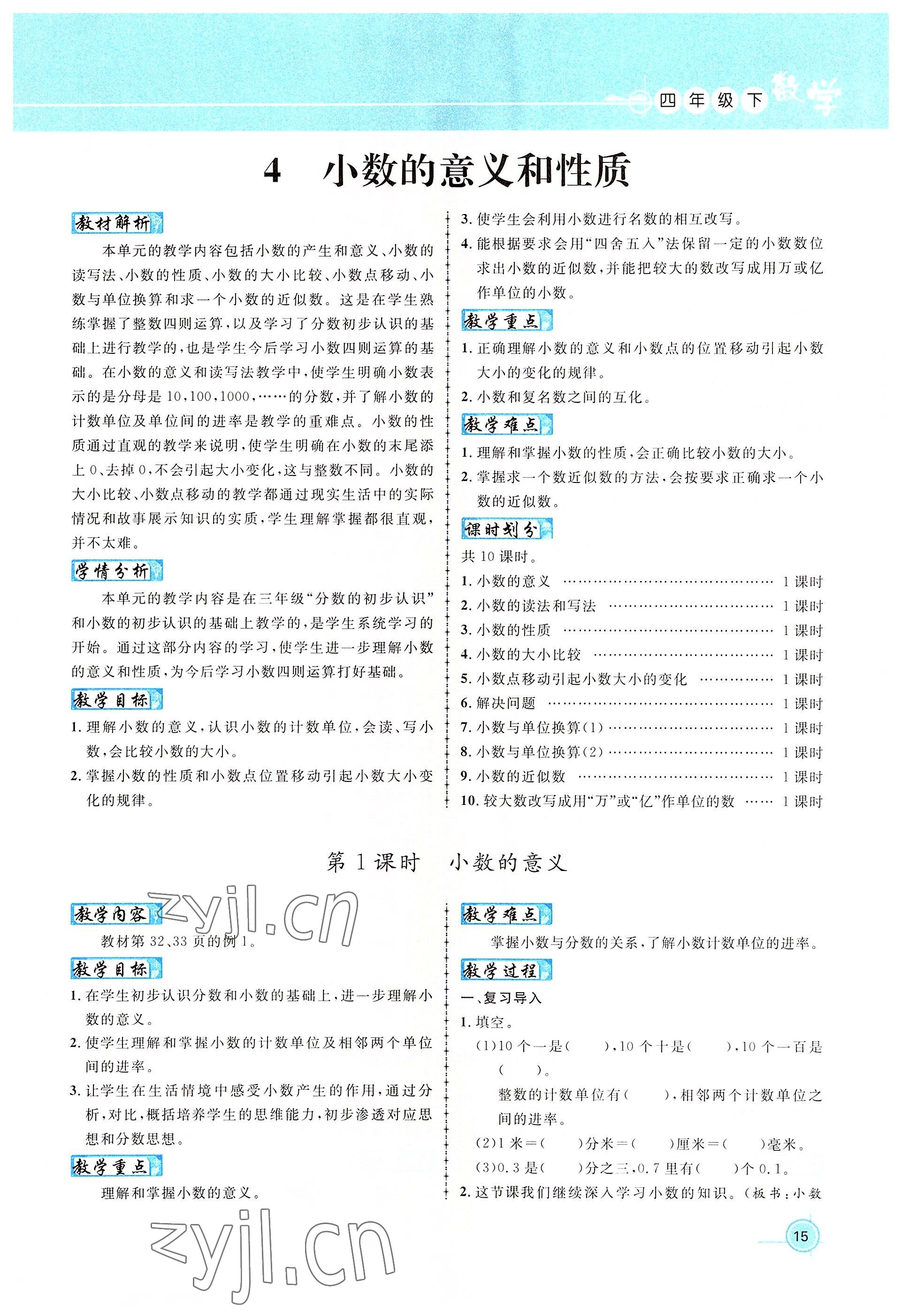 2022年名师测控四年级数学下册人教版鄂黄专版