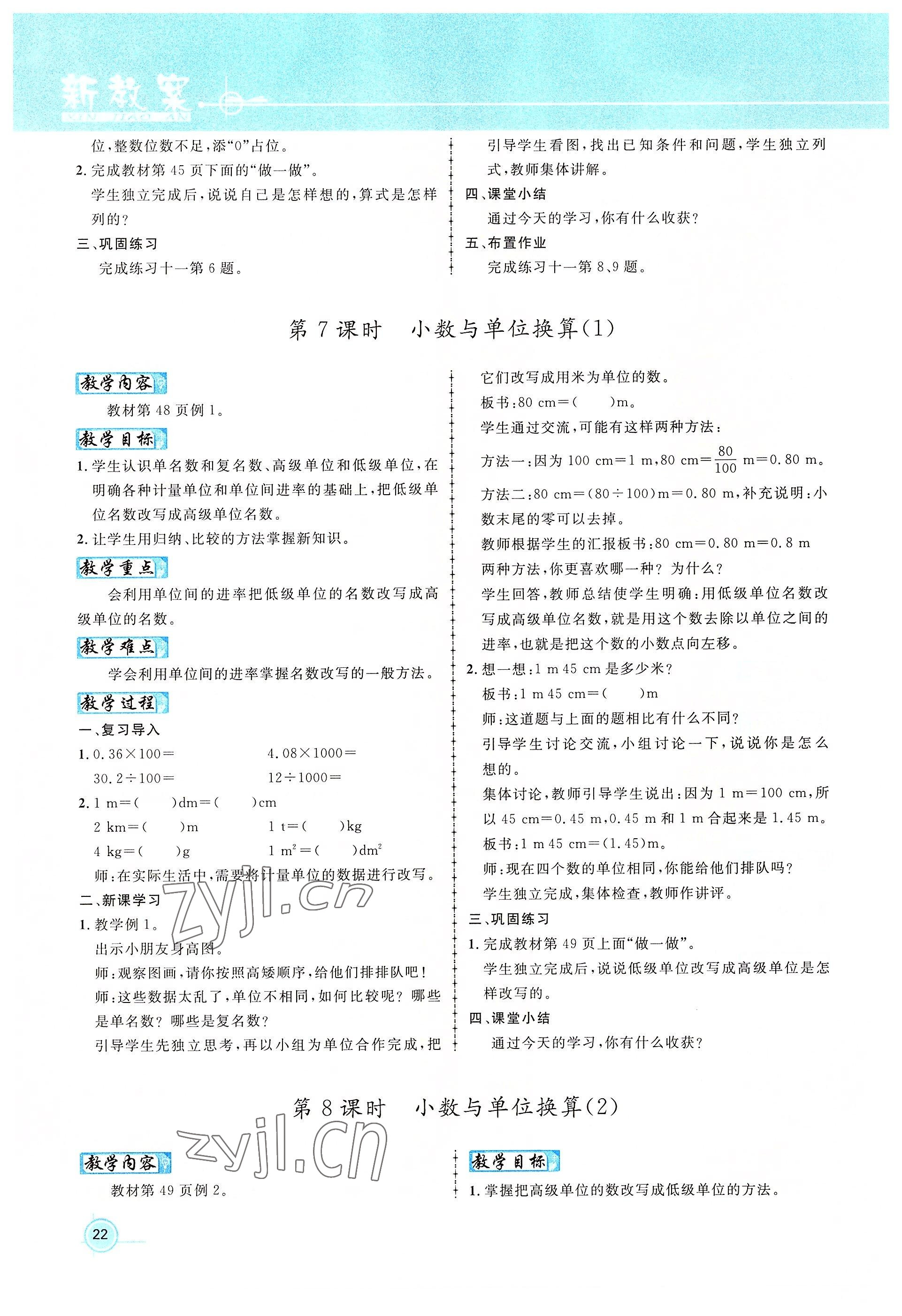 2022年名师测控四年级数学下册人教版鄂黄专版