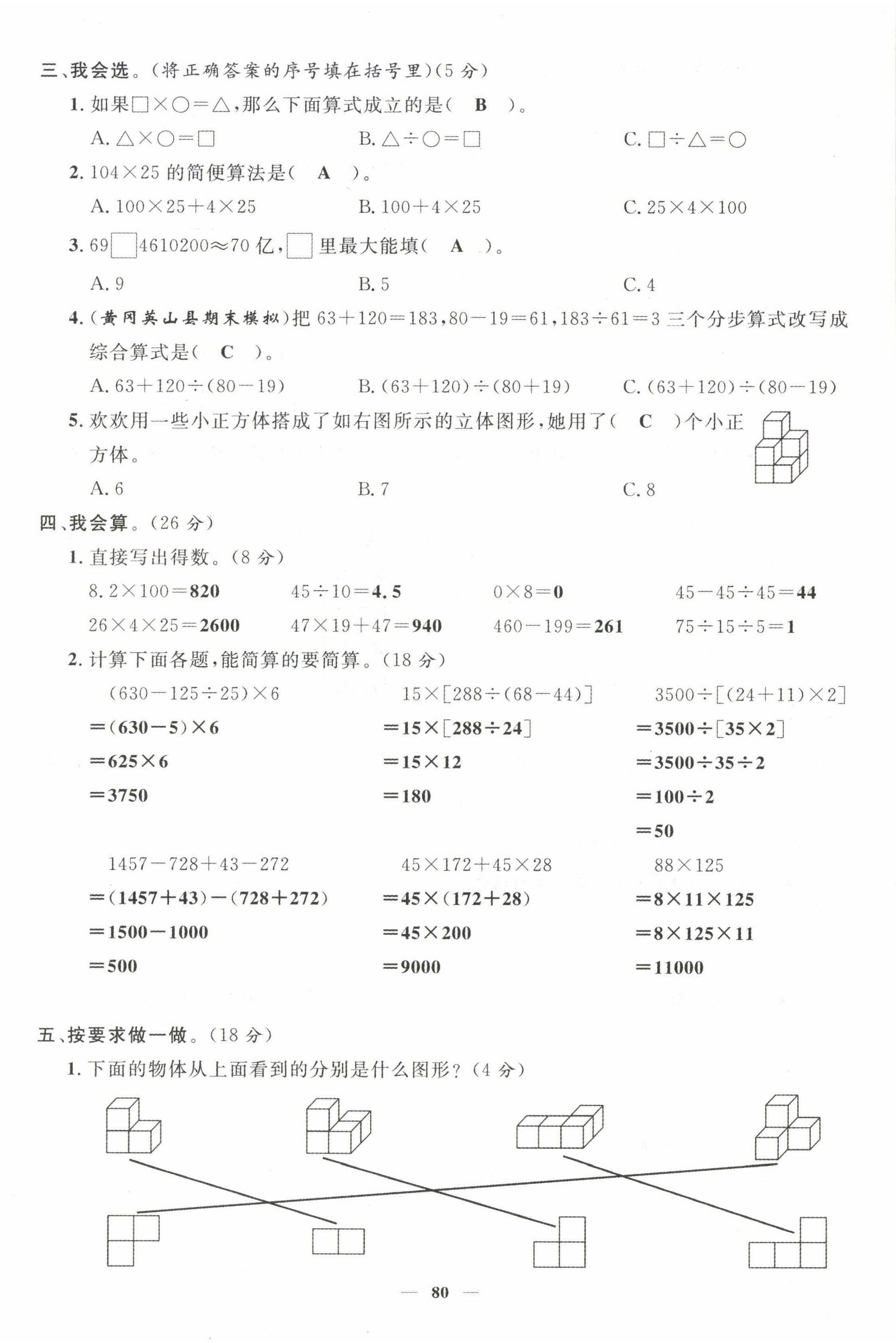 2022年名师测控四年级数学下册人教版鄂黄专版