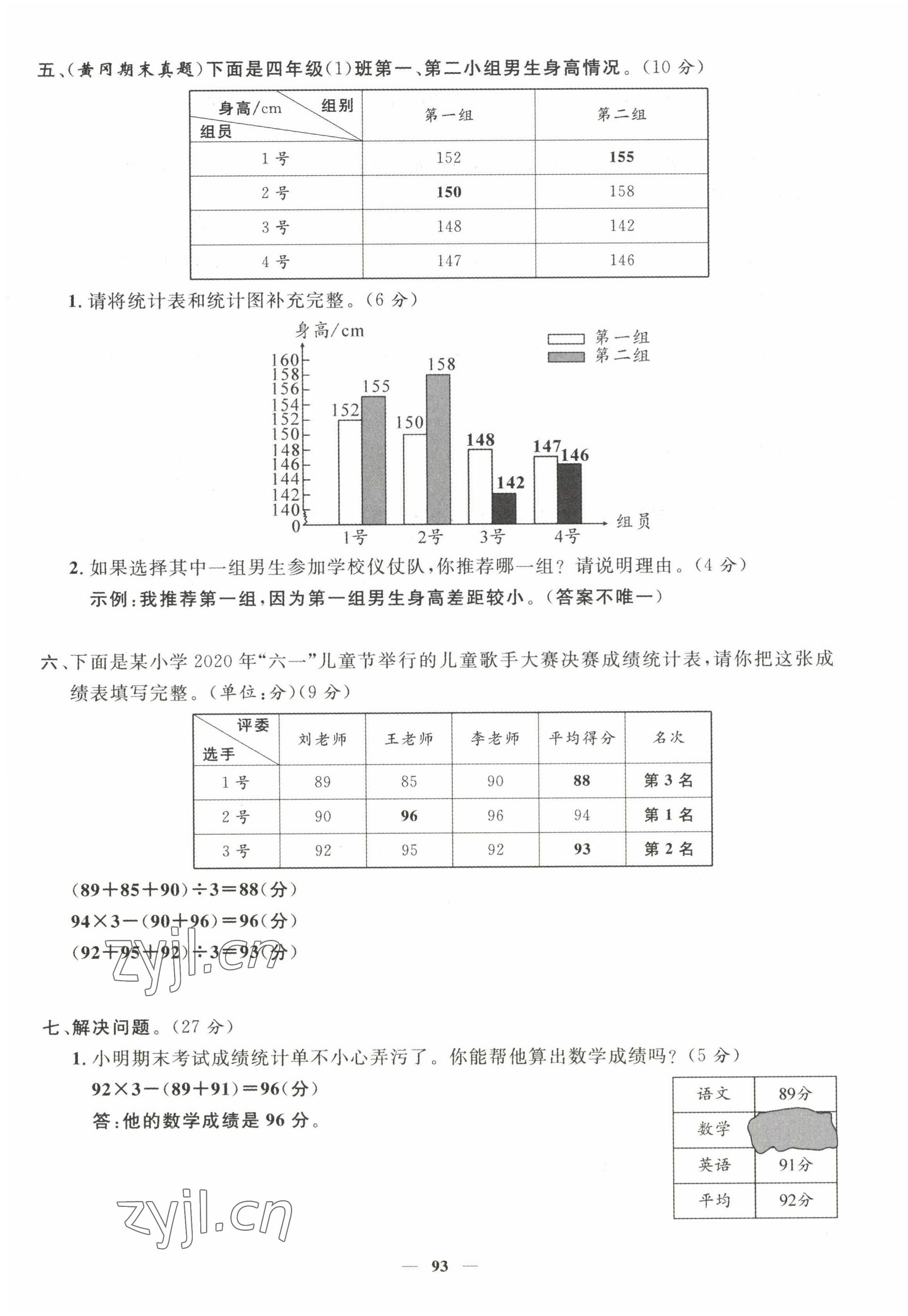 2022年名师测控四年级数学下册人教版鄂黄专版