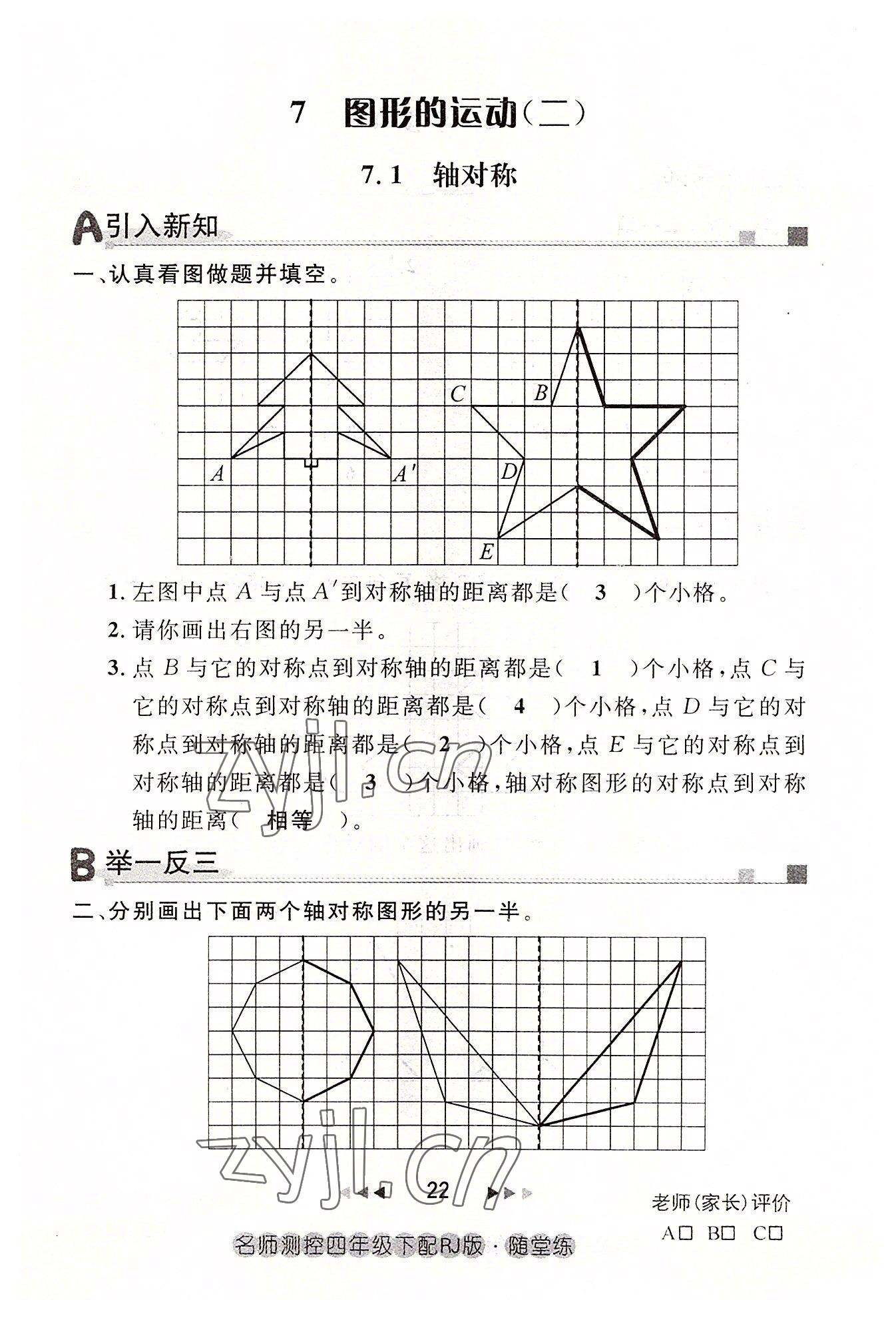 2022年名师测控四年级数学下册人教版鄂黄专版
