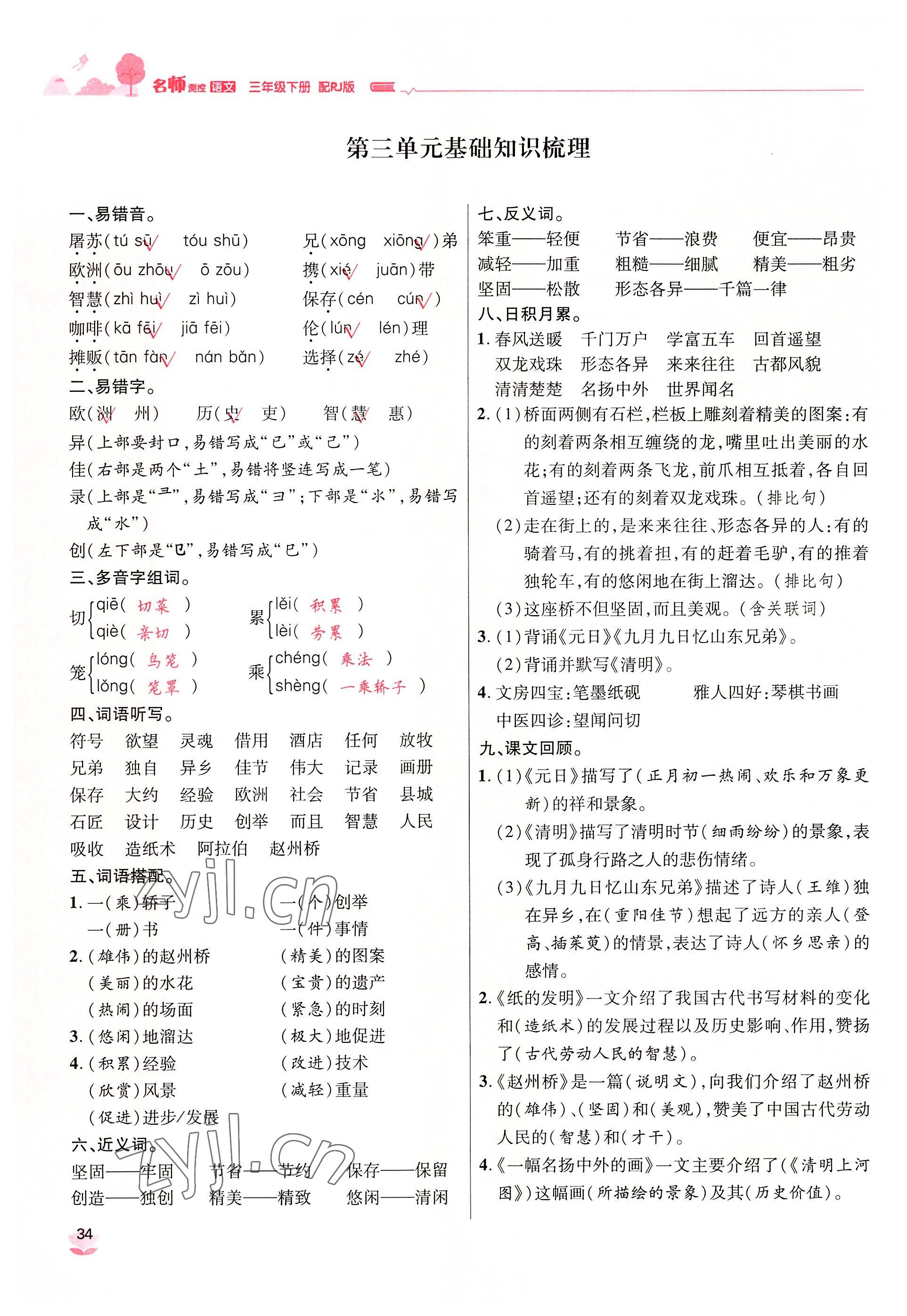 注:目前有些书本章节名称可能整理的还不是很完善,但都是按照顺序排列的,请同学们按照顺序仔细查找。练习册 2022年名师测控三年级语文下册人教版鄂黄专版 答案主要是用来给同学们做完题方便对答案用的,请勿直接抄袭。